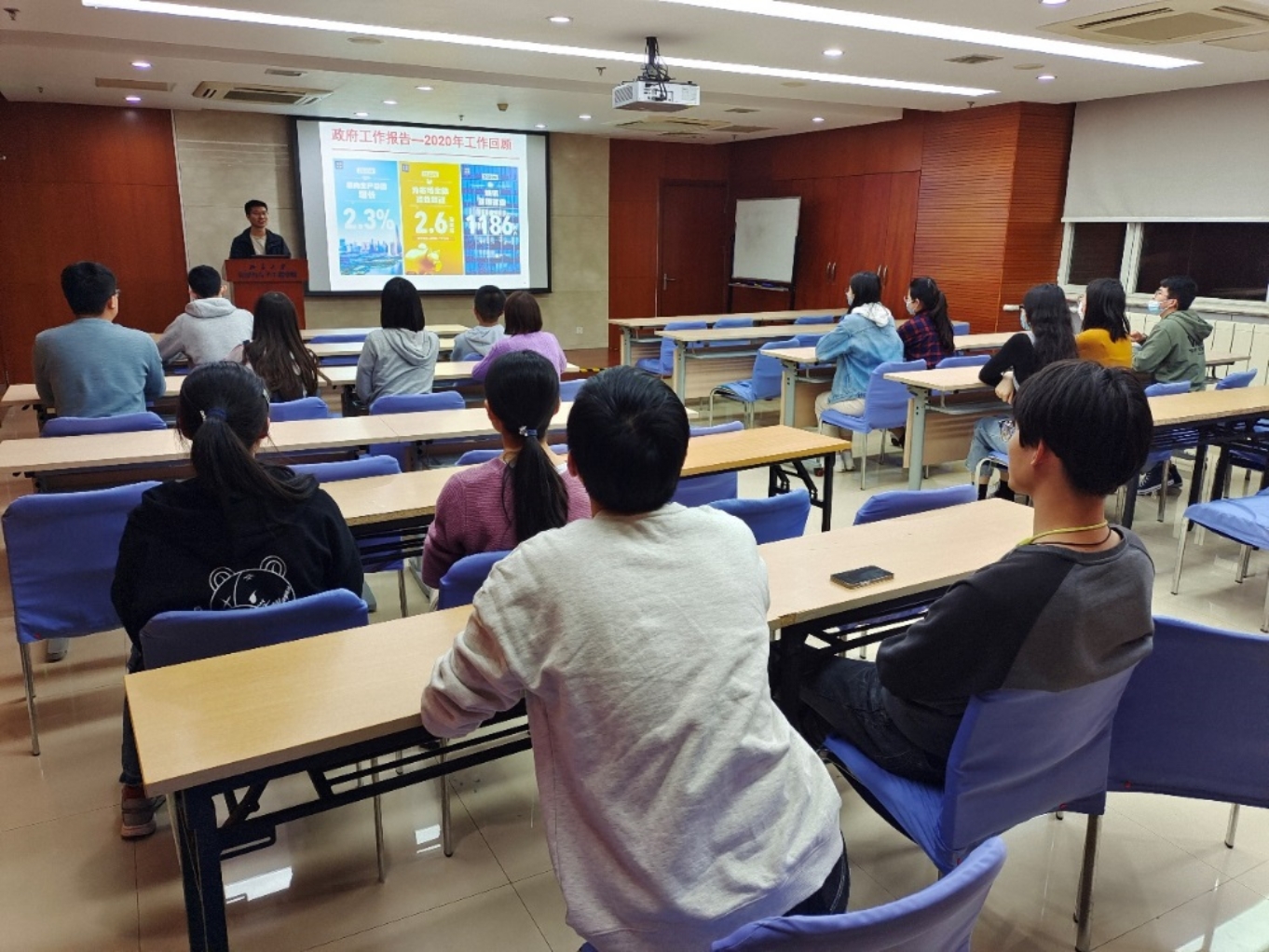 首先,张攀向大家介绍了两会的基本情况。2021是“十三五”收官与“十四五”开局之年,面对疫情爆发、部分国家敌对等国内外压力,我们中国政府和人民仍交出一份不错的答卷。张攀给大家展示了一系列出现在政府工作报告中的数据,从生产、市场、就业、民生、教育和医疗等各方面展现了中国的重大发展和成就。其中尤为突出的是脱贫攻坚和疫情防治,充分体现了我们党全心全意为人民服务的根本宗旨。政府工作报告还总结了“十三五”时期的主要成就,制定了2021年乃至整个“十四五”时期的发展目标。看着一条条具体而又深入的目标,大家都备受鼓舞,对我们党、国家和人民充满信心。此外,全国人民代表大会高票通过香港选举相关的法案,大家一致认可和平与统一是全体中国人民共同的愿望,须由“爱国者治港”。