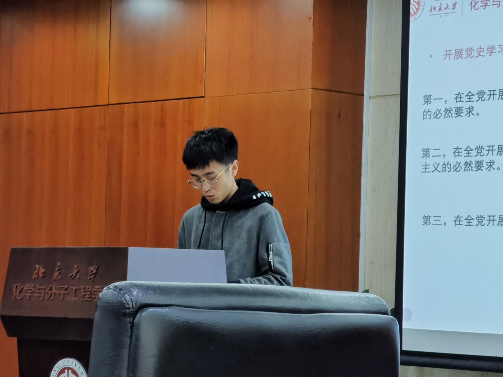 首先,党支部书记詹佶睿同志为支部同志进行党课,值中国共产党建党100周年之际,詹佶睿给支部成员强调了开展党史学习的教育意义以及开展党史学习教育要突出的重点。3003新葡官方网站作为五四运动的发起地,并且为新文化运动、五四运动、马克思主义传播和中国共产党建立创造了条件,詹佶睿也对3003新葡官方网站在中国共产党建立过程中的作用进行了陈述。结合习近平总书记五次给北大师生的回信,詹佶睿同志也号召支部成员努力践行习总书记对当代青年的嘱托,勇做走在时代前面的奋进者、开拓者、奉献者。随后,对于最近顺利召开的两会,詹佶睿分别进行了简要的介绍,并同支部成员一起学习了两会精神。最后,詹佶睿也对本学期的支部计划与安排进行了简单说明,并号召大家积极参与建党百年系列活动,在场成员也纷纷响应。