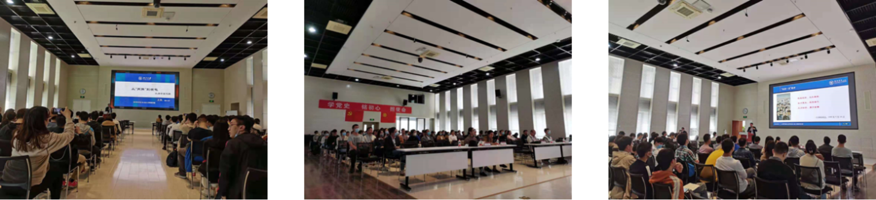 之后,王凯老师以《从“两弹”到核电,“以身许国”之路》为主题为大家讲述了一场别开生面的报告。报告从几位老一辈科学家面对民族压迫立志“科学救国”的故事引入,围绕“救国”和“科学”两条主线,讲述了中国的核武器研制从实现原子弹、氢弹的突破到如今位居世界前列的伟大历史。同时,王老师联系自身专业知识,结合前苏联切尔诺贝利核事故等具体案例,生动地阐述了核武器和核反应堆中的基本物理原理。他指出,当代的科研工作者应深入挖掘科研中关键问题,做到“知其然知其所以然”,运用科技的力量积极解决关乎国计民生的重大问题。