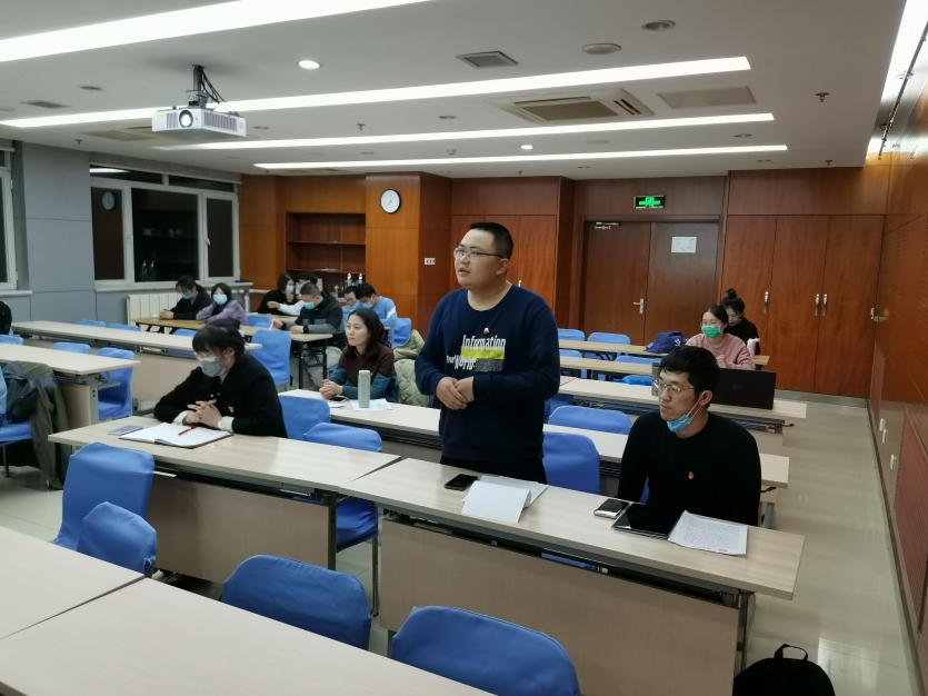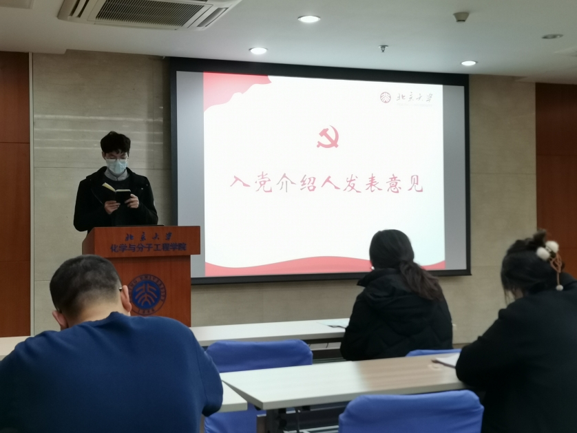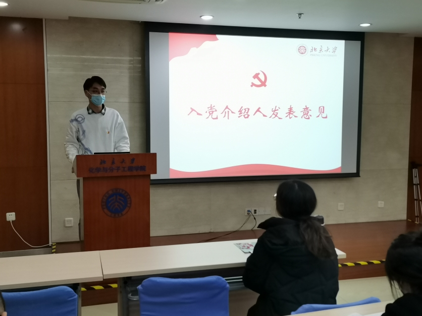 2021年123日晚7点,2020级研究生第一党支部转正大会在A717顺利举行。会议由党支部书记于珮瑶同志主持,党委副书记王菲老师第一党支部全体党员、转正对象霍培昊同志和姜志凡同志出席了会议。