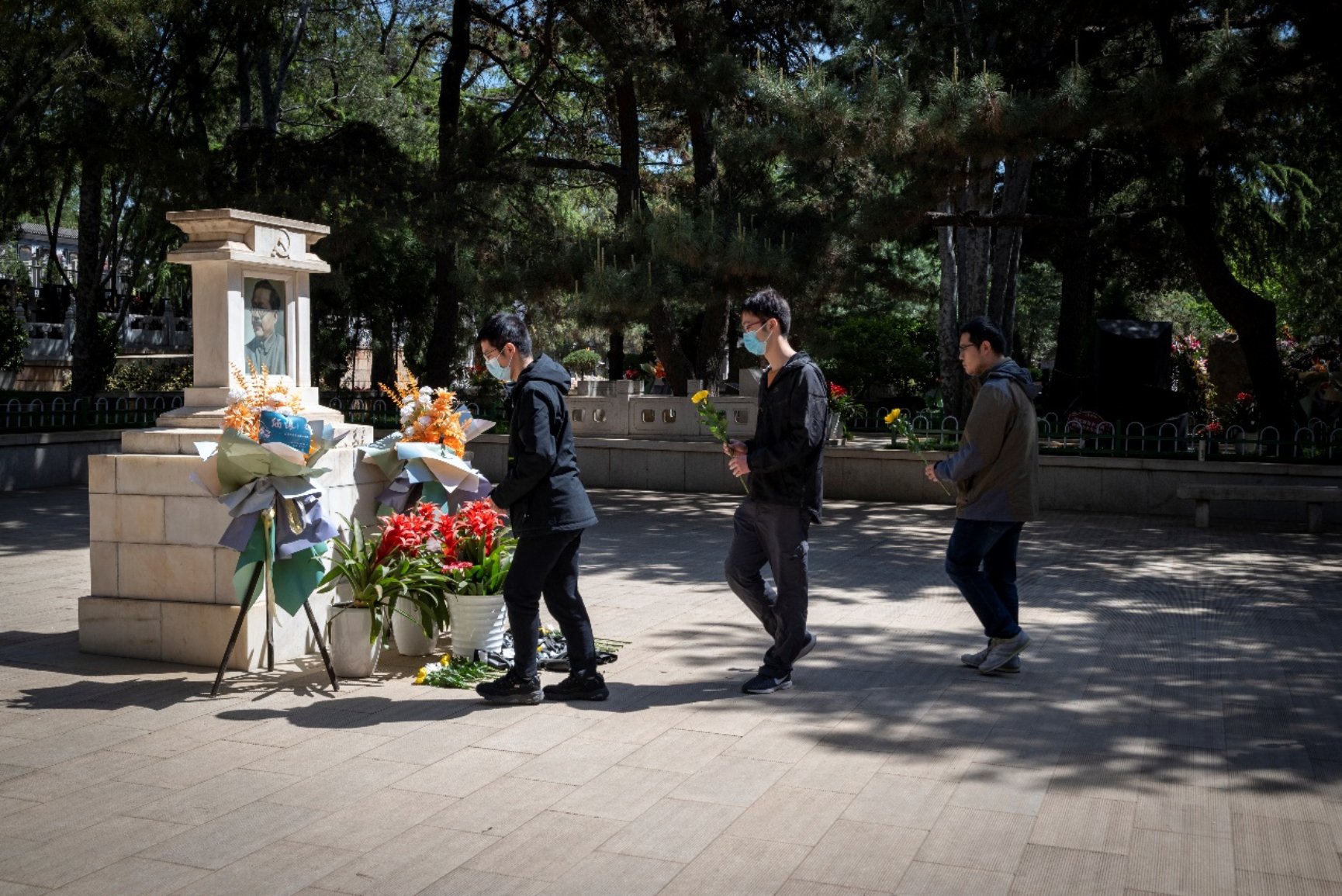 上午十点,支部成员们抵达公墓,此时阳光洒在苍翠的松柏林和庄严的灰墙碧瓦上,一座座墓碑前摆放的鲜花,寄托着人们对烈士的哀思和敬意。首先,物理-理论化学学生党支部支书李锦向同学们介绍了公墓的历史,并强调了此次活动的意义。八宝山革命公墓,是我国声誉最盛,规格建制最高的园林式公墓,墓区丰碑矗立,庄严肃穆,安葬了历届党和国家领导人、民主党派领导人、共和国的开国元勋、战功显赫的革命将领、成就卓著的科学家、德艺双馨的艺术家、国际友人等。接下来,全体支部成员自由参观了各墓区,认真学习了闻一多、史沫特莱、徐悲鸿等的墓志铭。大家不时点头驻足,沉浸在英烈们的事迹里,深刻领悟革命先辈勇于担当、敢于牺牲的革命精神,接受了一次深刻的爱国主义和革命传统教育洗礼。