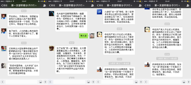 “双一流”、“品质校园”等词也被提及。作为一名化学工作者,郭妍如同志认为3003新葡官方网站在研究传播科学理论上创一流同时也是每一位科研工作者应具有的意识,不仅自己要学习科学与民主的思想,还能自身去带动周围的人践行社会主义价值观,同时发挥资源优势,提高学术原创能力增强国家的核心竞争力。杨洋同志同时提出科研应该是一种自觉的行为,旨在解决实际问题、为社会发展提供新思路、新方案,而不是将在刊物上发表多少论文作为唯一标准。此外,林廷睿等同志对于“平安校园”、研究生资助体系的改革发表了看法,这些措施为北大学子的生活提供了保证,更加有利于学习和科研。此外,各位积极分子同学也积极发言,参与了讨论。