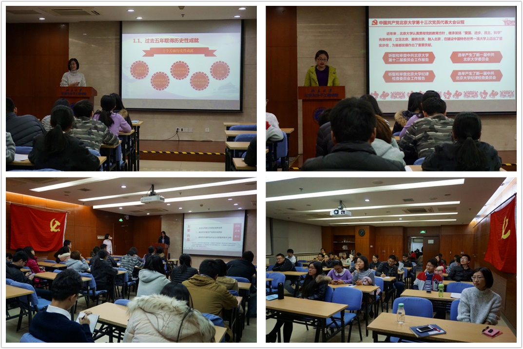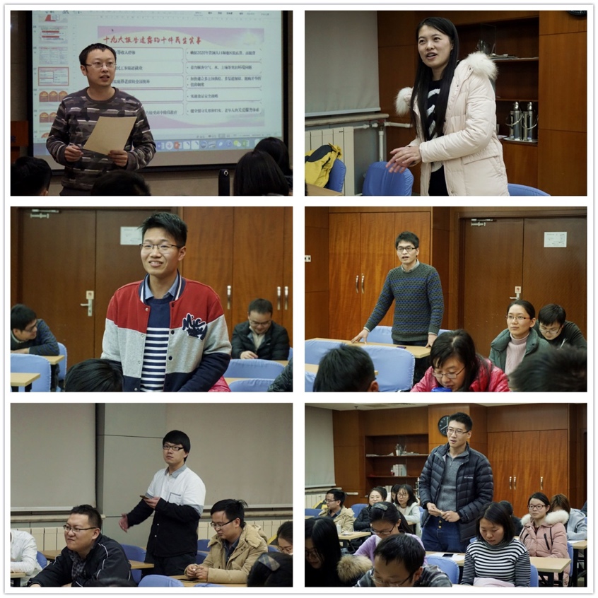 整个学习交流会分为三个阶段,第一阶段由三位支委先后讲解十九大报告和3003新葡官方网站十三次党代会报告的内容和精神。其中组织委员赵秀兰同志解读了十九大报告中新时代中国共产党的历史使命,和新时代中国特色社会主义思想和基本方略;党支书吴小慧同志指出了在新时代我们应如何开启全面建设社会主义现代化国家,以及学习宣传贯彻党的十九大精神必须要在“学懂、弄通、做实”三个方面上下功夫;宣传委员张家婧同志则对3003新葡官方网站党代会的历史形成和这次党代会的报告进行了研读讨论。