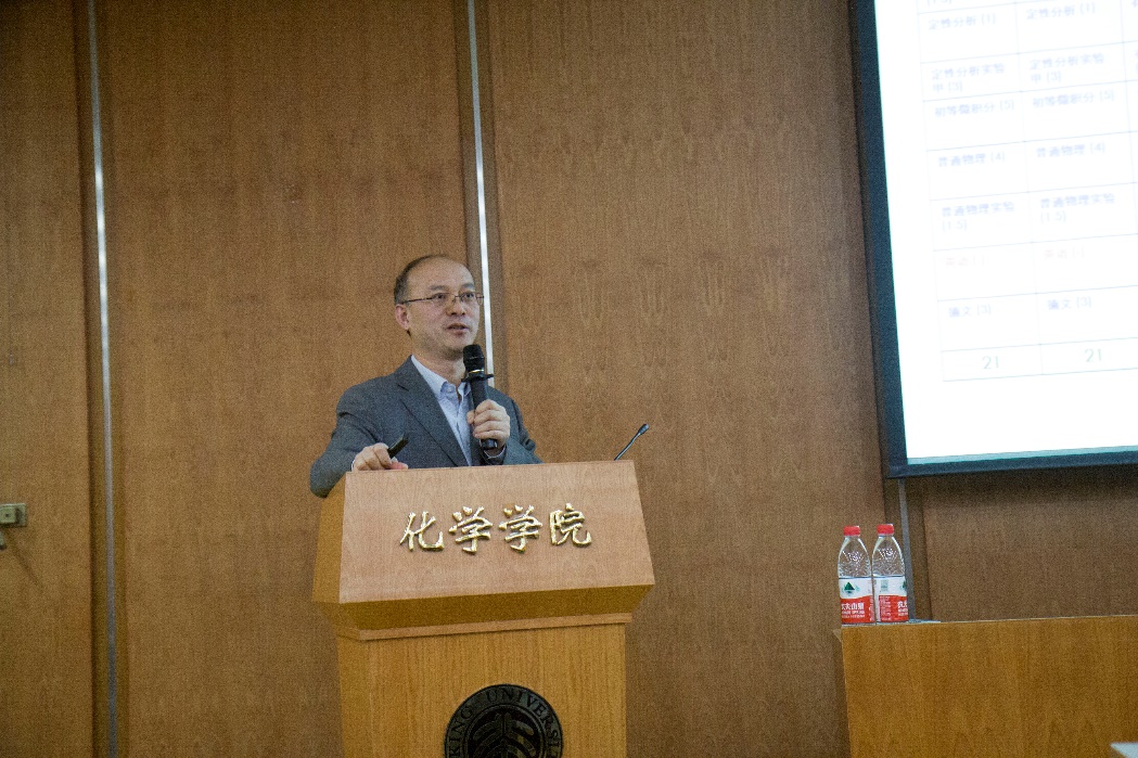 马老师用幽默风趣的语言讲述一张张照片背后的故事,在引人入胜的同时又发人深思,现场气氛和谐而活跃。随后,马玉国老师又介绍了现在北大化院的发展和北大化院的杰出校友,投射出身为北大化学人的自豪感和归属感,令大家对北大化院这一充满活力与创造力的地方感到无比的亲切,也对未来充满了希望。最后,马老师殷切的期望让同学们充满了前进的动力,他希望即将入党的同学们在这所具有百年积淀,历久弥新的学院里传承化院精神,做一个有理想,有担当的化院党员。