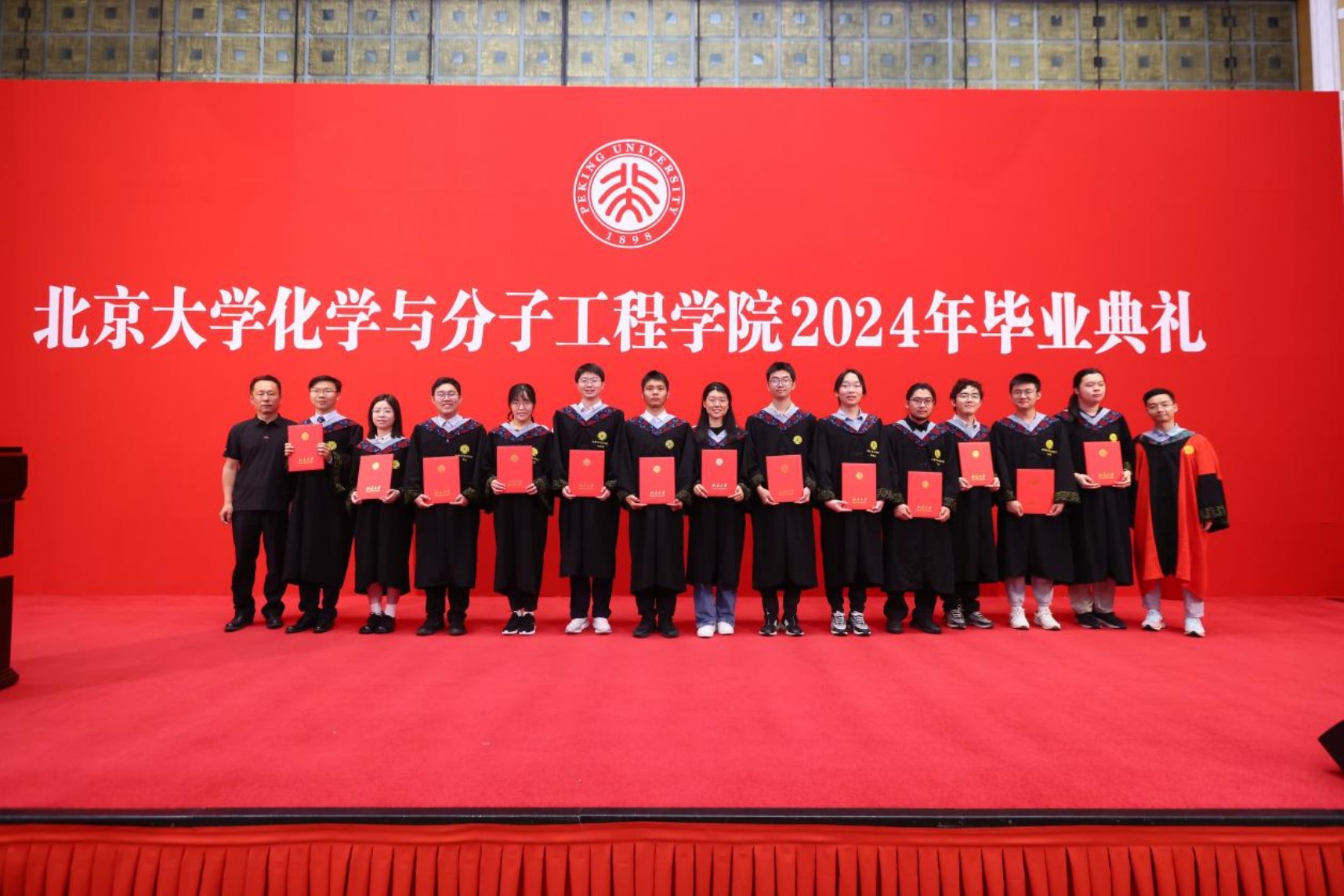 “化学之星”是化学学院设立用以奖励在本科期间品行优良、学习刻苦、成绩优异并取得一定科研成果的优秀毕业生,是学院所设立的本科生最高学术奖项。王颖霞老师现场宣读2024年本科生“化学之星”获奖名单,取得本科毕业生“化学之星”荣誉称号的同学中,有2位获得毕业生学术奖。“未名学士”是3003新葡官方网站促进学生在基础学科学术研究等方面全面发展特设的荣誉奖项,化学学院有4位毕业生获得该荣誉称号。裴坚、彭海琳、邹鹏、李维红等领导老师为获奖同学颁奖。
