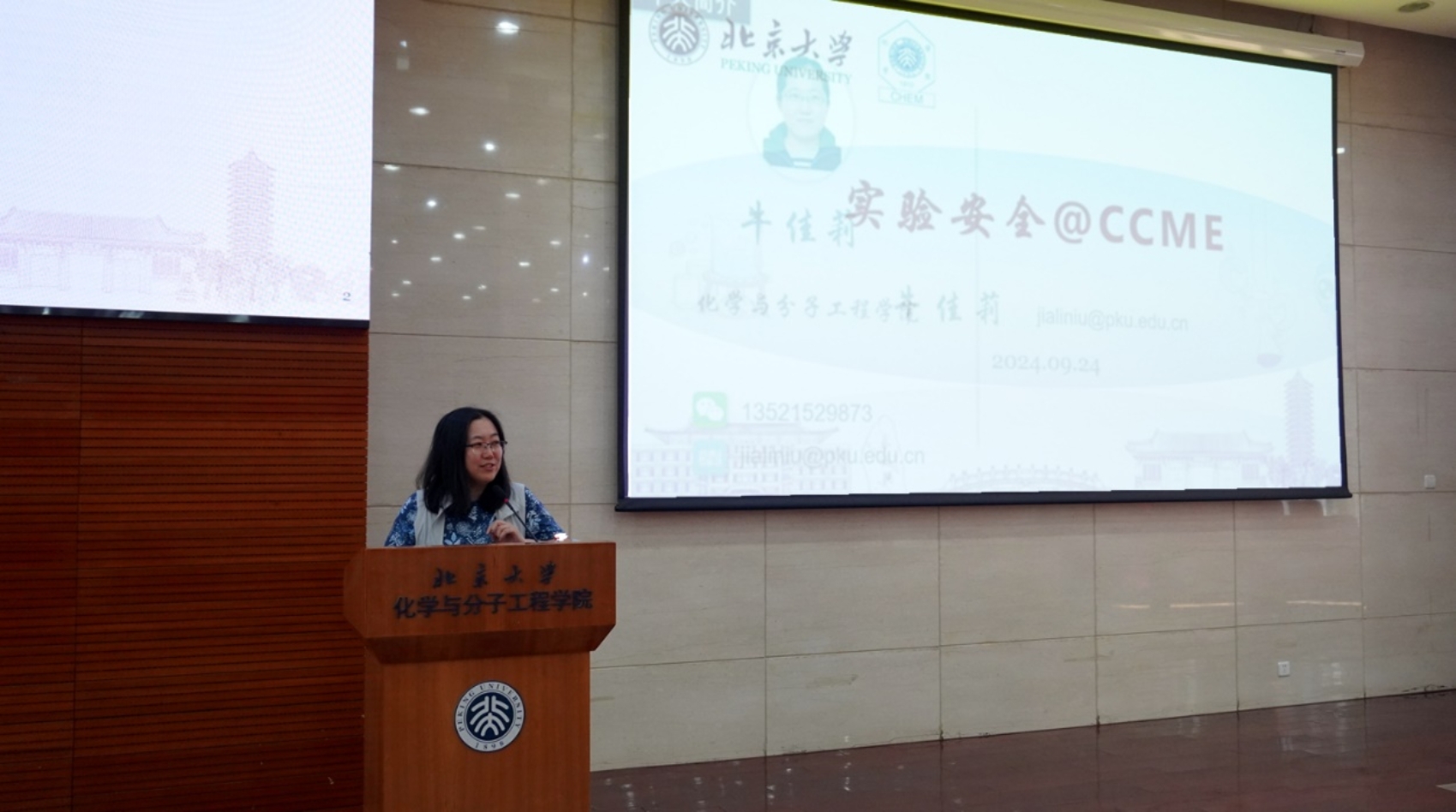 最后,高分子科学与工程系实验室主任牛佳莉就实验安全进行了全面细致的培训。她通过视频展示、案例分析等形式,向新员工们普及了化学实验中的安全操作规程及相关应急措施,强调了实验安全对于保障科研活动顺利进行的重要性。