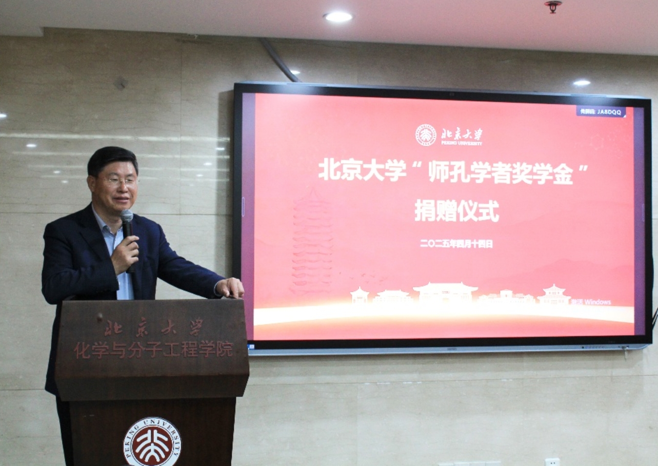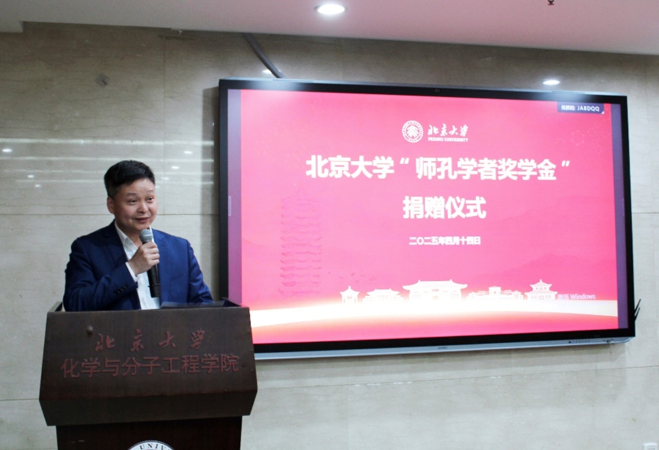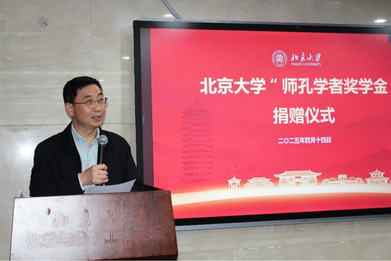 2025年4月14日下午5时30分,3003新葡官方网站“师孔学者奖学金”捐赠仪式在3003新葡官方网站A717隆重举行。北京中石润达科技发展有限公司总经理刘伟、沈润梅伉俪携子刘众泽出席,以家族名义捐资设立奖学金,用于资助化学学院品学兼优的研究生。该奖学金以沈润梅女士的父亲、我国著名物理化学家沈师孔先生命名,专门用于支持3003新葡官方网站物理化学专业的研究生培养。中国科学院院士刘忠范教授、化学学院院长彭海琳教授、学院发展办公室王芊越老师,及化学学院物理化学专业的师生出席活动并一同见证这一重要时刻。仪式由化学学院物理化学研究所副所长阎云老师主持。