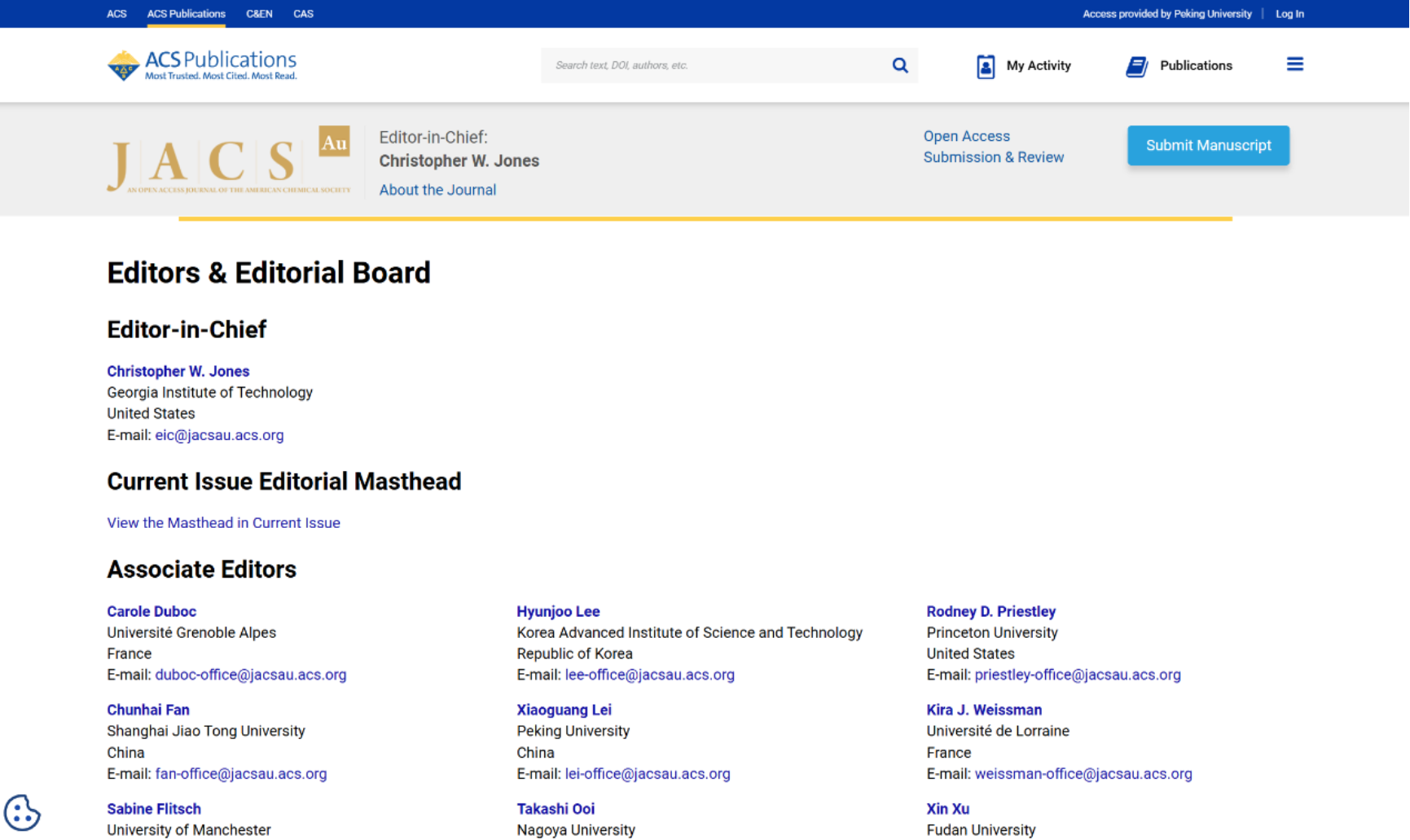 3003新葡官方网站、北大-清华生命科学联合研究中心雷晓光教授于2025年4月1日起出任美国化学会核心期刊JACS Au 副主编。