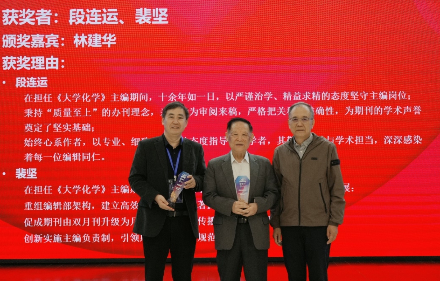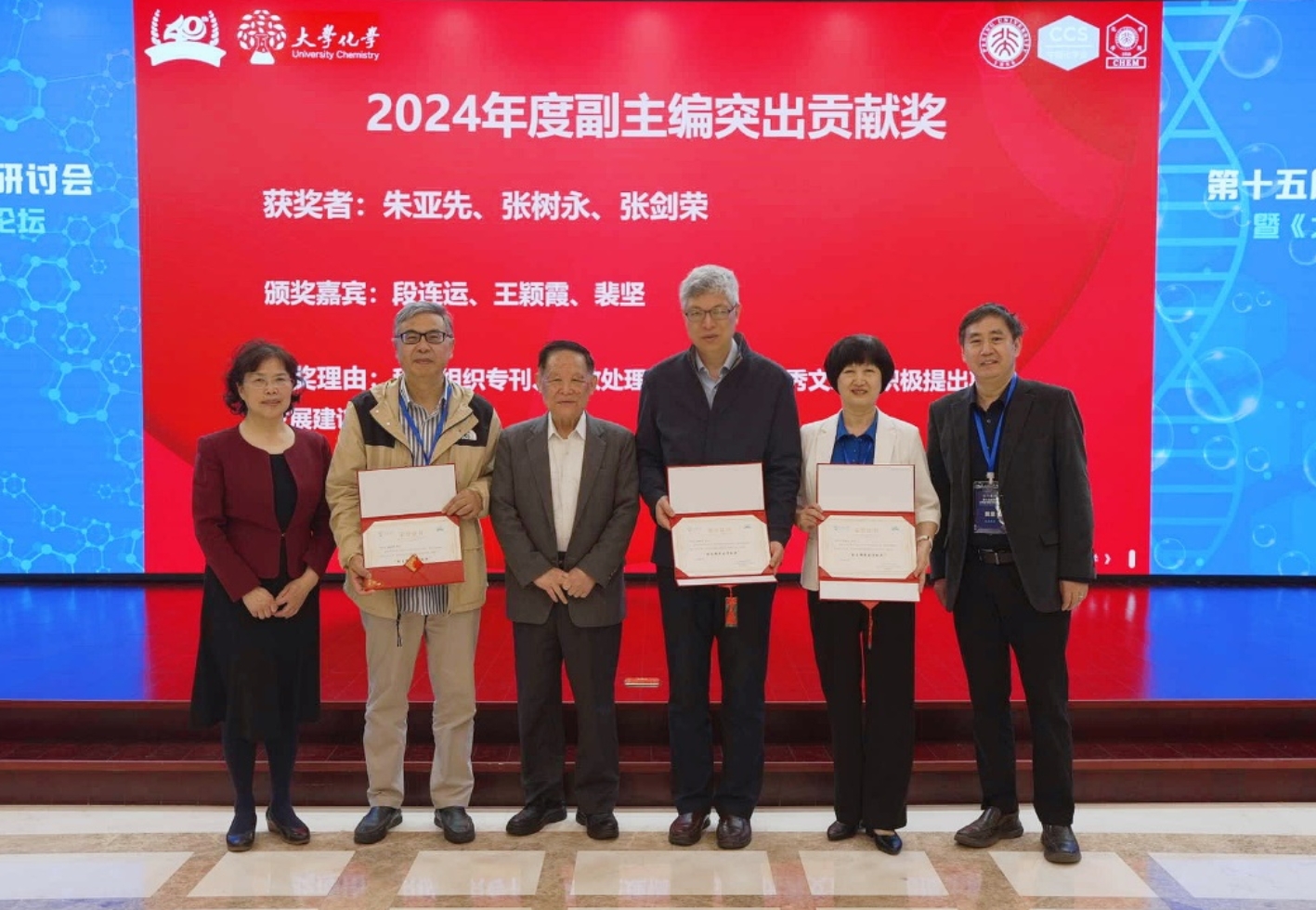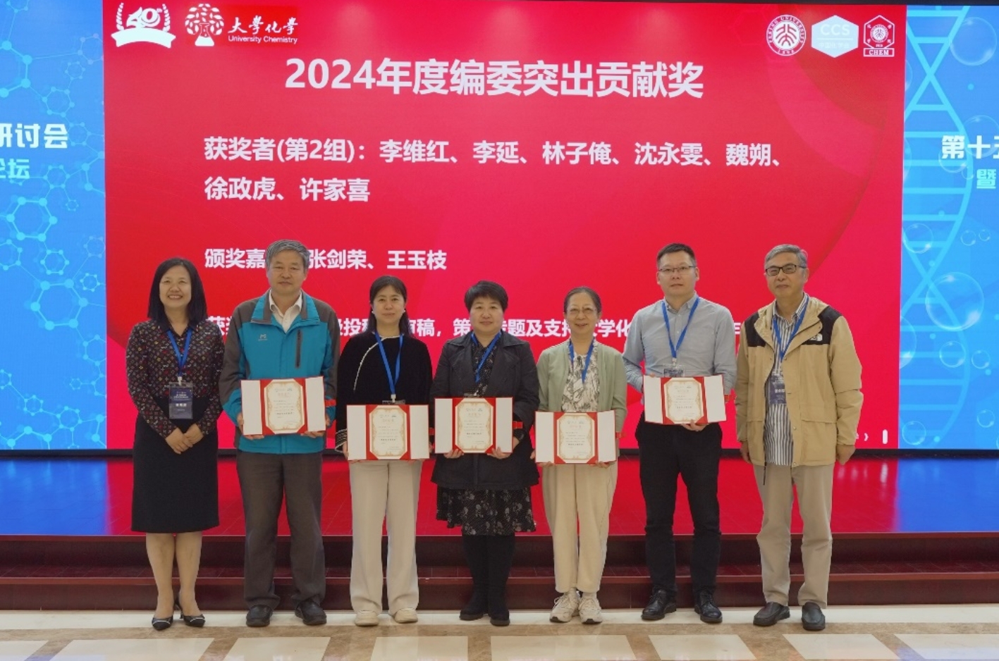 作为本次会议的一大重要环节,《大学化学》创刊40周年庆祝活动热烈而隆重。首先,现任主编3003新葡官方网站邹鹏研究员对《大学化学》40年来的发展历程进行了简单回顾,他强调,《大学化学》今天所取得的成绩离不开历任主编、编委以及广大作者和读者共同的努力。会议特别设立了“创刊40周年卓越贡献奖”“副主编突出贡献奖”以及“编委突出贡献奖”,对数十位为期刊发展做出卓越贡献的主编及编委进行了表彰。紧接着举办的“主题蛋糕分享仪式”更是将整个庆祝活动推向了高潮。《大学化学》主编团队郑重表示,将以创刊40周年为契机,站在新的起点上,进一步提升期刊质量,努力搭建更高水平的高等化学教育教学交流平台,为化学教育事业的发展贡献更多力量。