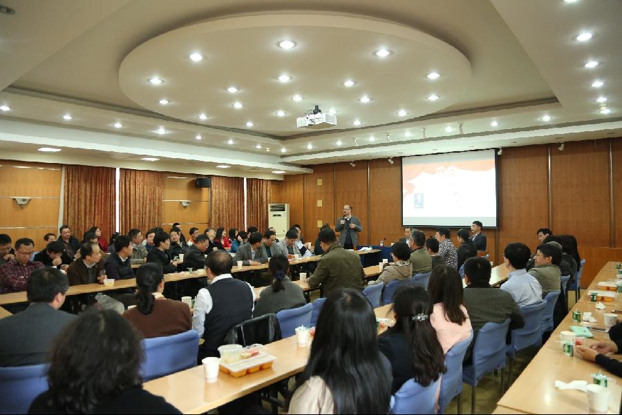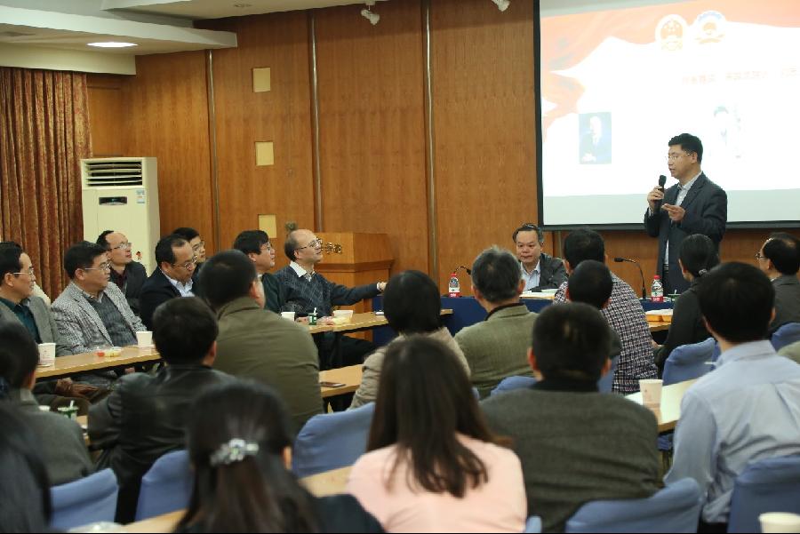 随后,由周其凤院士和刘忠范院士结合自身提案情况,与大家分享交流参会感受和履职情况。两位代表向在座的教职员工生动形象地展示了国家最高权力机关全国人民代表大会的职责和人大代表行使权力、履行职责的过程,同时介绍了今年两会上“一府两院”报告及预算决算报告的审议情况。两位院士还分享了两会期间提交议案的过程,并就他们关心的议题向大家进行了介绍,如高校现行博士后制度、新兴产业的国家支持方式等与科学技术紧密相关的问题,以及社会关注度较高的养老教育等热门议题。他们说,关注国家改革发展稳定的重大问题和人民群众普遍关心的突出问题是每一个全国人大代表的职责,也是鞭策自己不断学习和调研的动力。