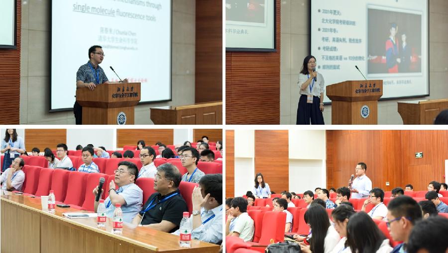 论坛邀请了活跃在科研最前沿的北大物化专业杰出校友、清华大学的陈春来研究员和张莹莹副教授做邀请报告。陈春来老师08年在北大化院取得了博士学位,15年加盟清华大学生命科学院,分享了他在单分子荧光方法和技术方面的最新科研进展。张莹莹老师回忆了自己的求学生涯,在北大物化专业学习生活的点点滴滴,介绍了她们课题组在低微纳米碳材料制备方面的近期工作。两位老师为在座所有从事科研工作的同学们树立了非常好的青年榜样。