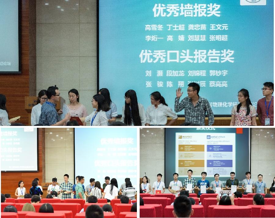经过所有与会同学的评选,本次论坛共评选出8位优秀墙报奖,和8位优秀口头报告奖。陈春来老师和张莹莹老师为各位优秀墙报奖的获得者颁发证书,阎云、刘莹、童廉明和杨立江四位老师为各位优秀口头报告奖的获得者颁发证书。《Materials》和《Applied Sciences》杂志代表为所有获奖者颁发奖金。