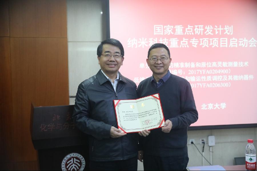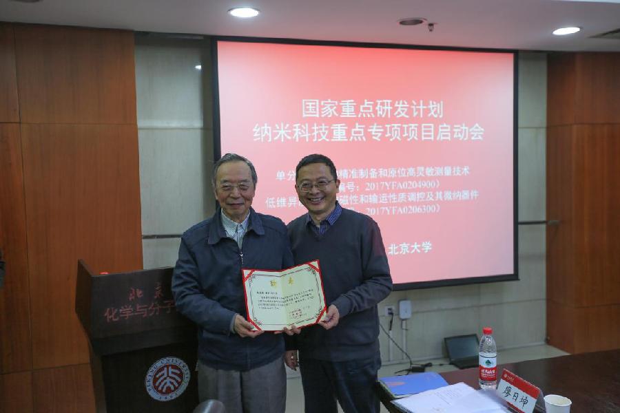 2017年10月19日,国家重点研发计划纳米科技重点专项“单分子器件的精准制备和原位高灵敏测量技术”和“低维异质结构的磁性和输运性质调控及其微纳器件”项目联合启动会在3003新葡官方网站召开。中科院院士朱道本,中科院院士刘云圻,中科院院士、西北工业大学副校长黄维,中科院院士沈保根,中科院院士刘明,中科院院士南策文,中科院院士、3003新葡官方网站副校长高松,3003新葡官方网站教授朱星、吴凯、彭练矛、徐洪起、戴伦,中科院半导体所研究员赵建华,中科院物理所研究员孙继荣,兰州大学教授薛德胜共15名专家、科技部高技术中心闫金定处长,3003新葡官方网站科研部副部长韦宇、相关部门负责人廖日坤、王纬超,3003新葡官方网站工学院院长张东晓、3003新葡官方网站副院长张锦以及各项目组成员出席了启动会。3003新葡官方网站科研部廖日坤主任、3003新葡官方网站朱星教授分别主持了会议。