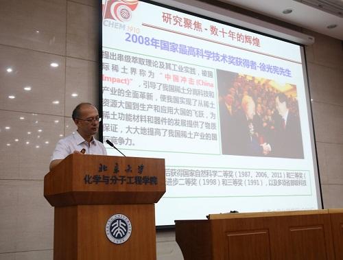 最后,分析化学研究所的赵美萍老师、有机化学研究所的席振峰老师、高分子科学与工程系的梁德海老师、应用化学系的沈兴海老师、化学生物学系的王初老师、理论与计算化学研究所的高毅勤老师、无机化学研究所的李彦老师和物理化学研究所的来鲁华老师分别简要地介绍了本系所师生情况和科研情况。