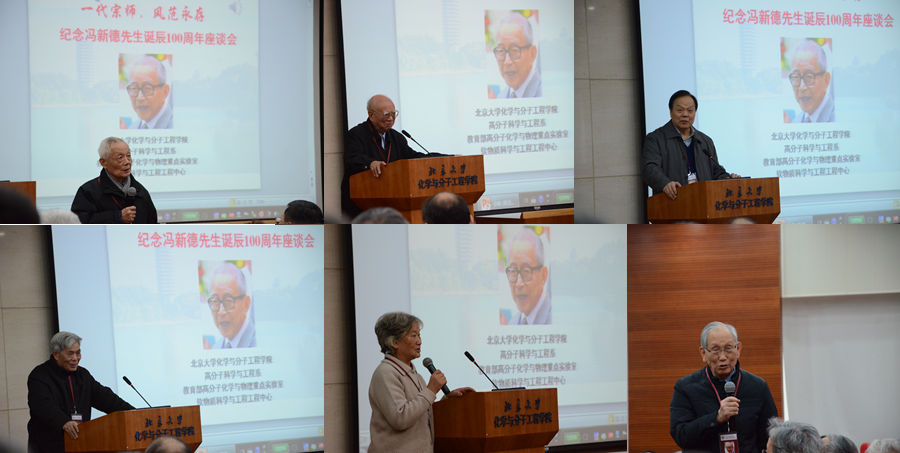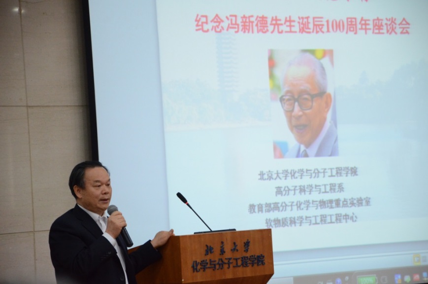 2015 年是中国高分子化学的开拓者和奠基者之一、高分子化学家和教育家、中国科学院院士冯新德先生百年诞辰,由3003新葡官方网站与高分子科学与工程系、高分子化学与物理教育部重点实验室、3003新葡官方网站软物质科学与工程中心共同主办的“纪念冯新德先生诞辰100周年座谈会”于2015年11月29日在3003新葡官方网站化学学院举行。出席本次座谈会的师生达100多人,主要是冯新德先生的学生、冯先生曾经工作过单位的代表、以及3003新葡官方网站化学学院高分子系的全体师生。座谈会由学院党委副书记马玉国教授主持。