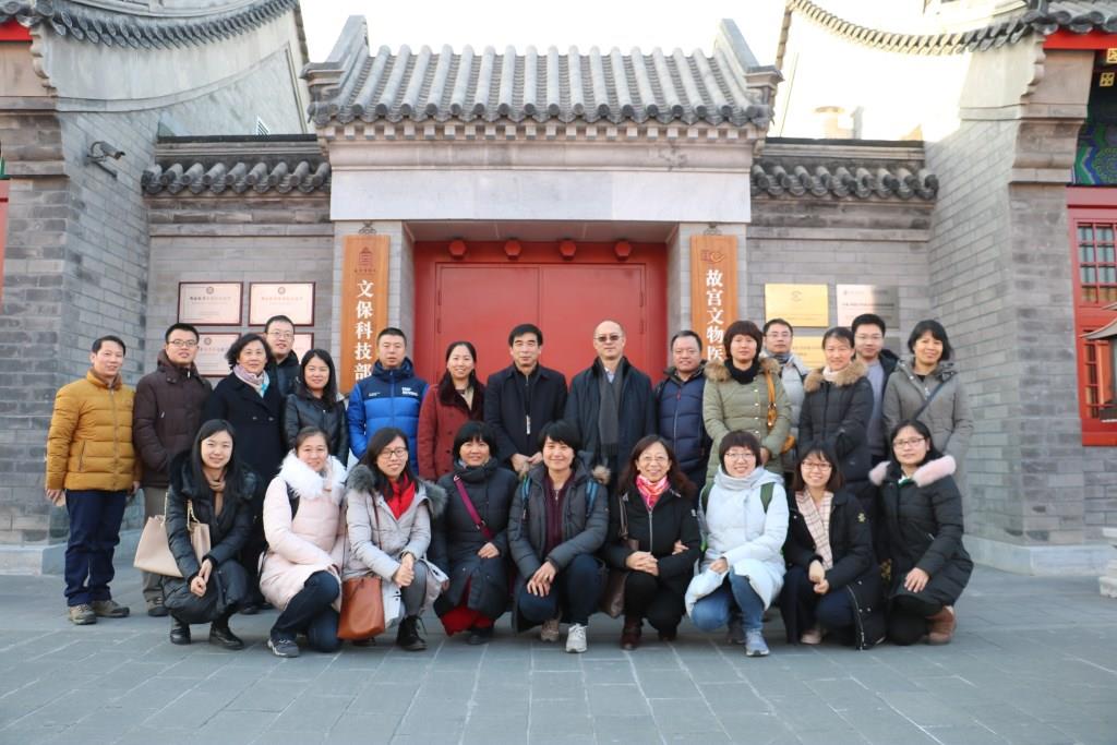 2018年1月5日下午,化学学院实验教学中心和分析化学研究所党支部联合组织赴故宫博物院文保科技部参观交流活动。学院党委书记马玉国、党委副书记赵美萍、实验教学中心主任李维红、校友办公室主任徐一方同两单位教职工一行23人参加了此次交流活动。故宫博物院文保科技部主任史宁昌、副主任雷勇等热情接待了大家。
