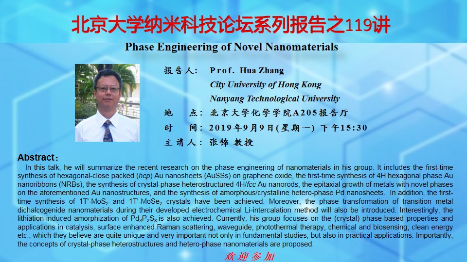 【3003新葡官方网站纳米科技论坛系列报告之119讲】Phase Engineering of Novel Nanomaterials