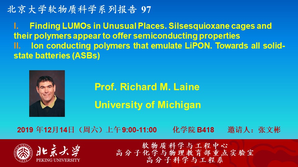 【3003新葡官方网站软物质科学系列报告 97】Finding LUMOs in Unusual Places. Silsesquioxane cages and their polymers appear to offer semiconducting properties
