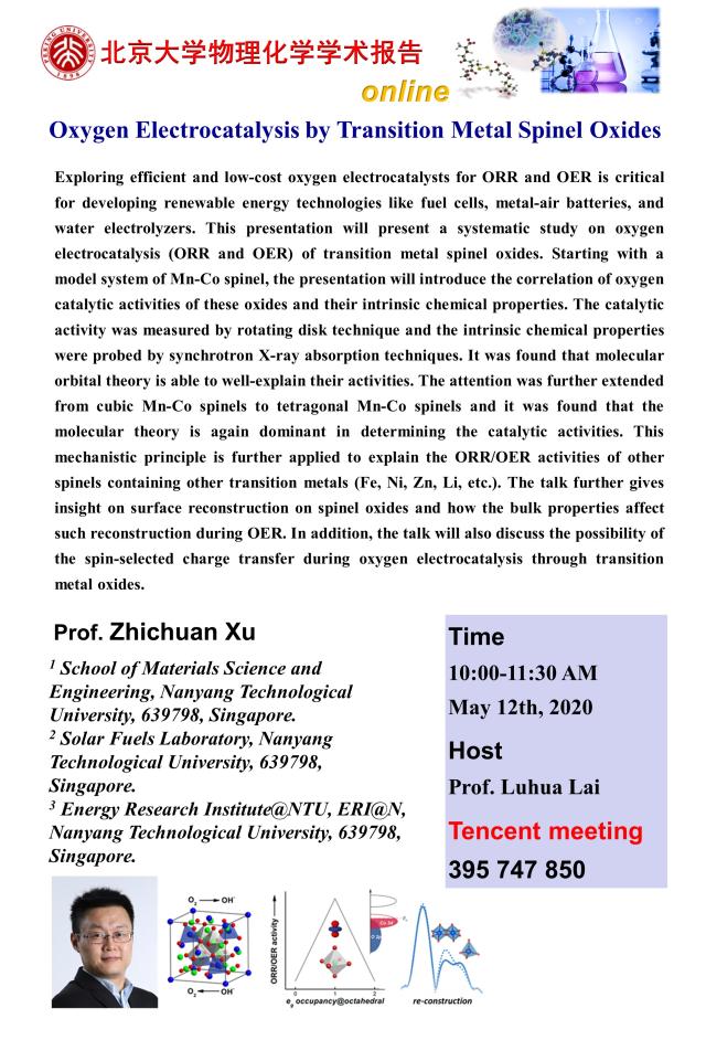 【3003新葡官方网站物理化学学术报告online】Oxygen Electrocatalysis by Transition Metal Spinel Oxides