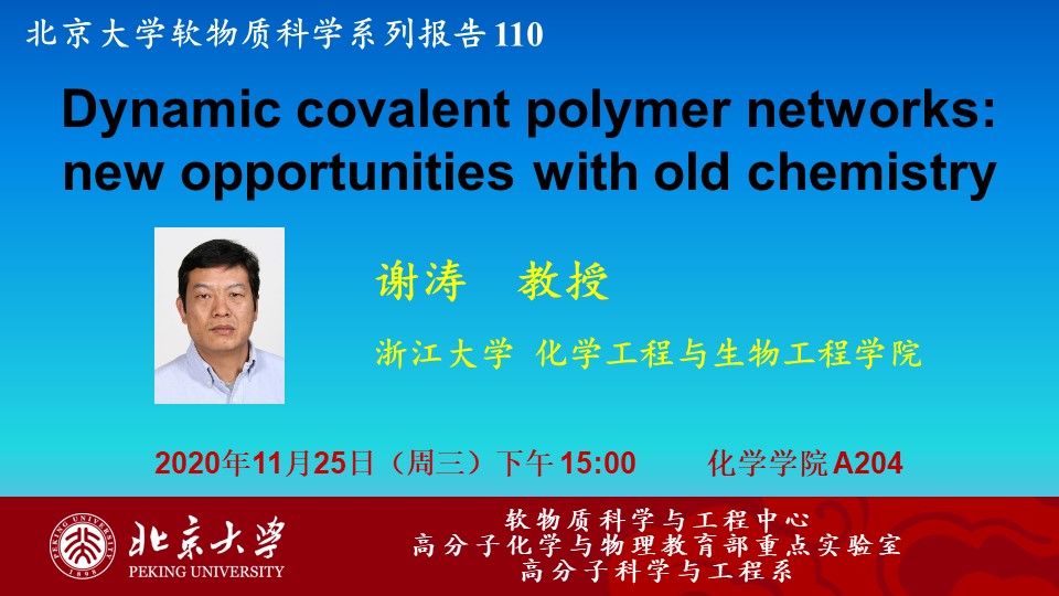 【软物质科学系列报告110】Dynamic covalent polymer networks: new opportunities with old chemistry