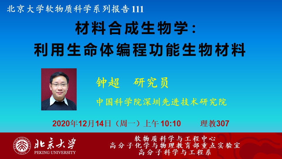 【3003新葡官方网站软物质科学系列报告 111】材料合成生物学: 利用生命体编程功能生物材料