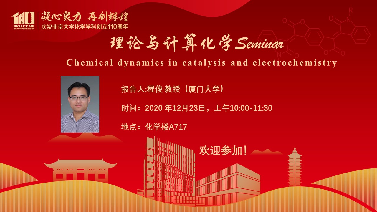 【报告人简介】程俊教授,2002、2005年分别获得上海交通大学化学化工学院学士和硕士学位。2008年在英国贝尔法斯特女王大学获得博士学位。之后在剑桥大学化学系从事博士后研究,2010年获得剑桥大学Emmanuel学院Junior Research Fellow职位开始独立研究工作。2013年获英国阿伯丁大学永久教职。2015年获国家高层次青年人才项目,全职回厦门大学担任闽江特聘教授。主要研究方向为表界面模拟方法发展、计算电化学、理论催化等。在Nature Materials, Nature Catalysis, Nature Commun., Science Advance, Phys. Rev. Lett.等学术期刊发表论文90余篇。2019年获得中国电化学青年奖。现担任《电化学》副主编、《ACS Catalysis》青年编委、AIP期刊Chem. Phys. Rev.编委顾问、《中国化学快报》青年编委、国际电化学出版委员会委员等。
