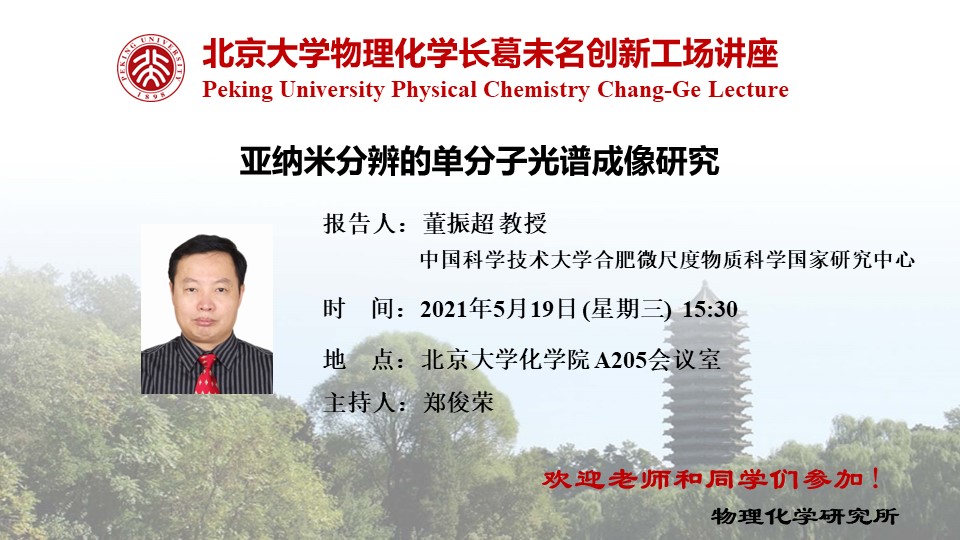 【3003新葡官方网站物理化学长葛未名创新工场讲座】亚纳米分辨的单分子光谱成像研究