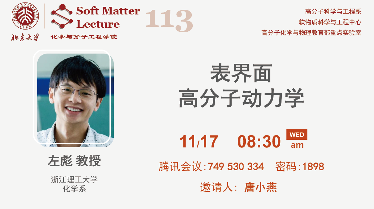 【3003新葡官方网站软物质科学系列报告】表界面高分子动力学