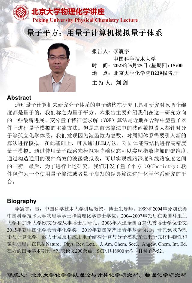 【3003新葡官方网站物理化学讲座】量子平方:用量子计算机模拟量子体系
