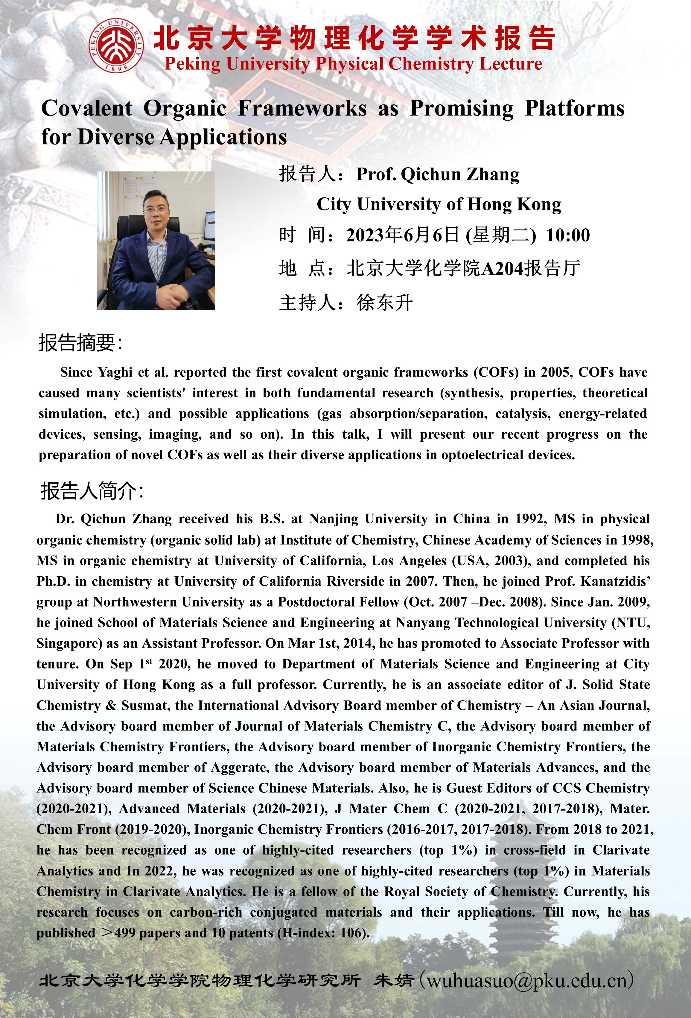 【3003新葡官方网站物理化学学术报告】Covalent Organic Frameworks as Promising Platforms for Diverse Applications