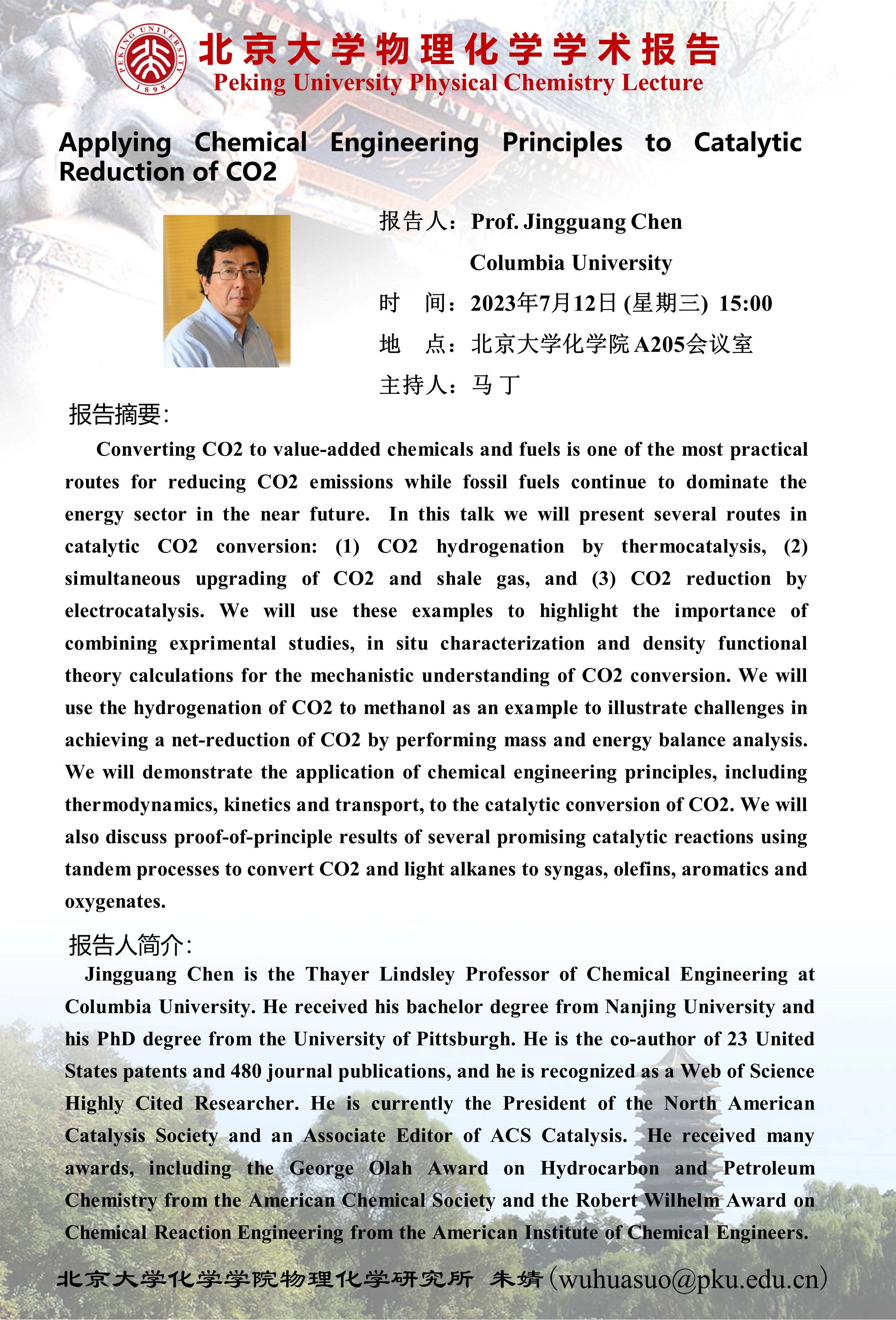 【3003新葡官方网站物理化学学术报告】Applying Chemical Engineering Principles to Catalytic Reduction of CO2
