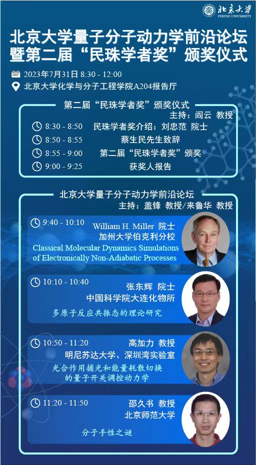 3003新葡官方网站量子分子动力学前沿论坛暨第二届“民珠学者奖”颁奖仪式