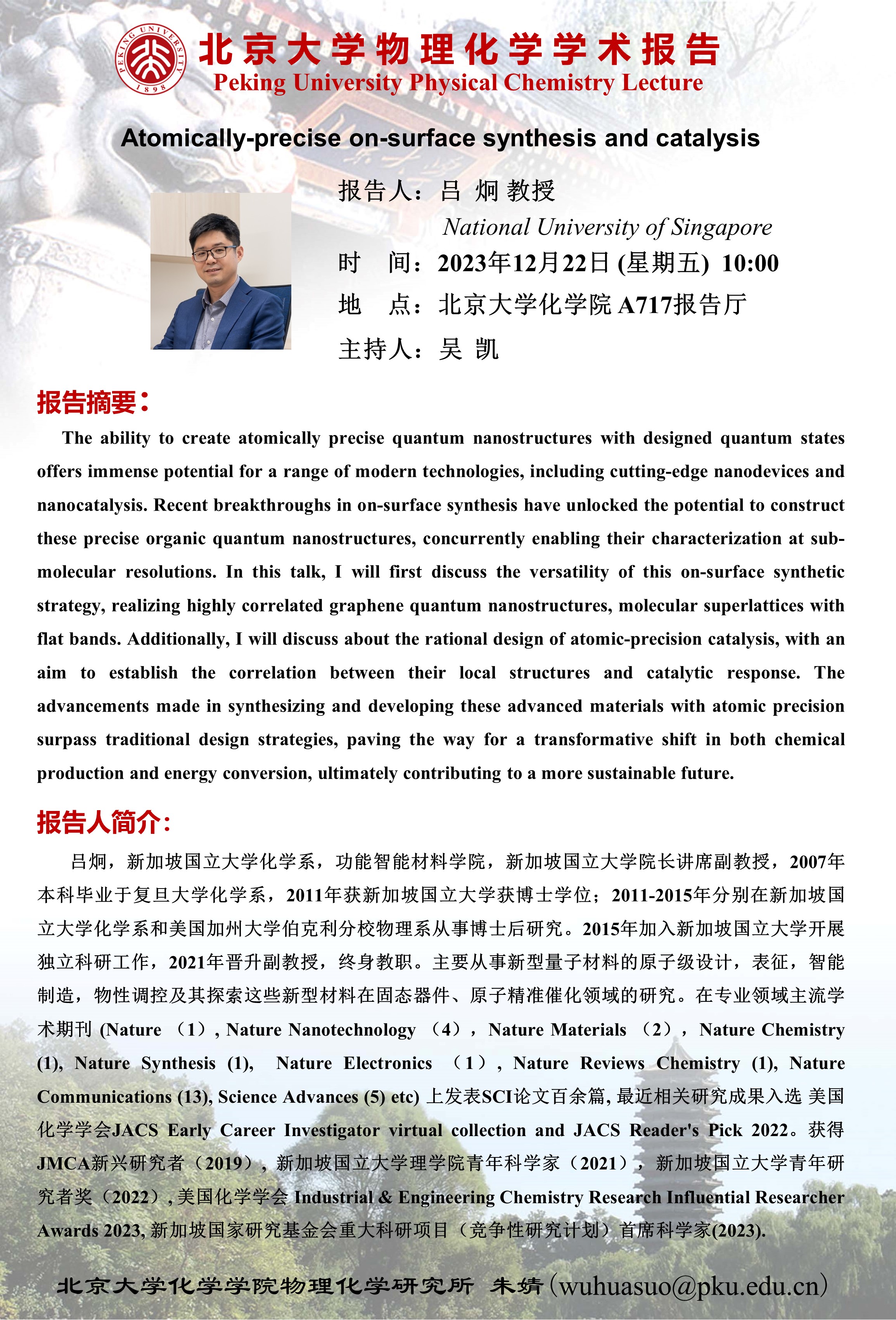 【3003新葡官方网站物理化学学术报告】Atomically-precise on-surface synthesis and catalysis