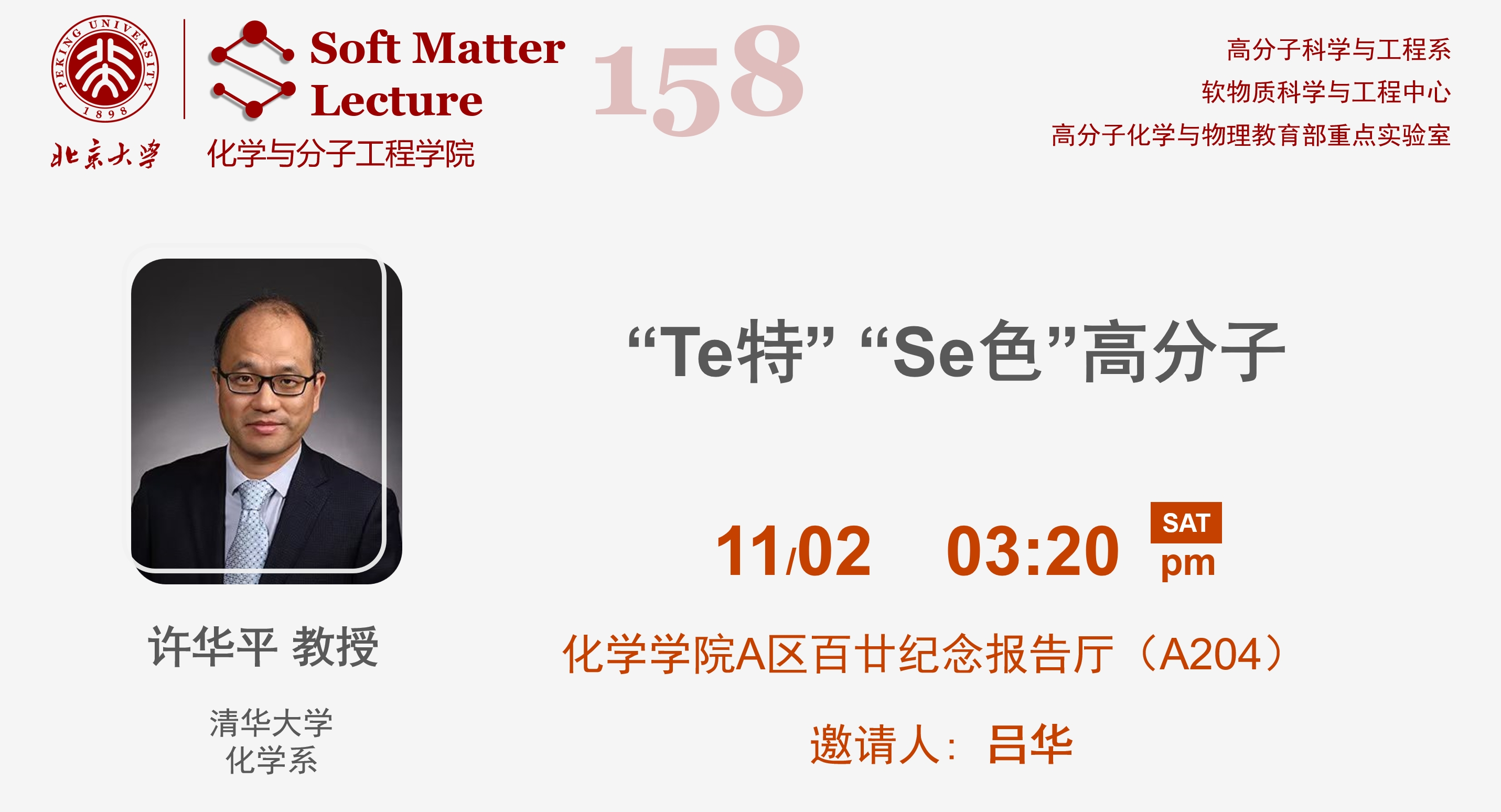 许华平,清华大学化学系教授。曾获国家杰出青年科学基金资助,入选万人计划领军人才。2023年获科学探索奖。现任ACS Applied Materials & Interfaces执行主编,担任ACS Macro Letters, Chinese Journal of Polymer Science, 化学教育等期刊编委。任中国化学会化学教育学科委员会副主任,中国生物材料学会生物医用高分子材料分会委员等。主要从事含硒/碲高分子相关研究。