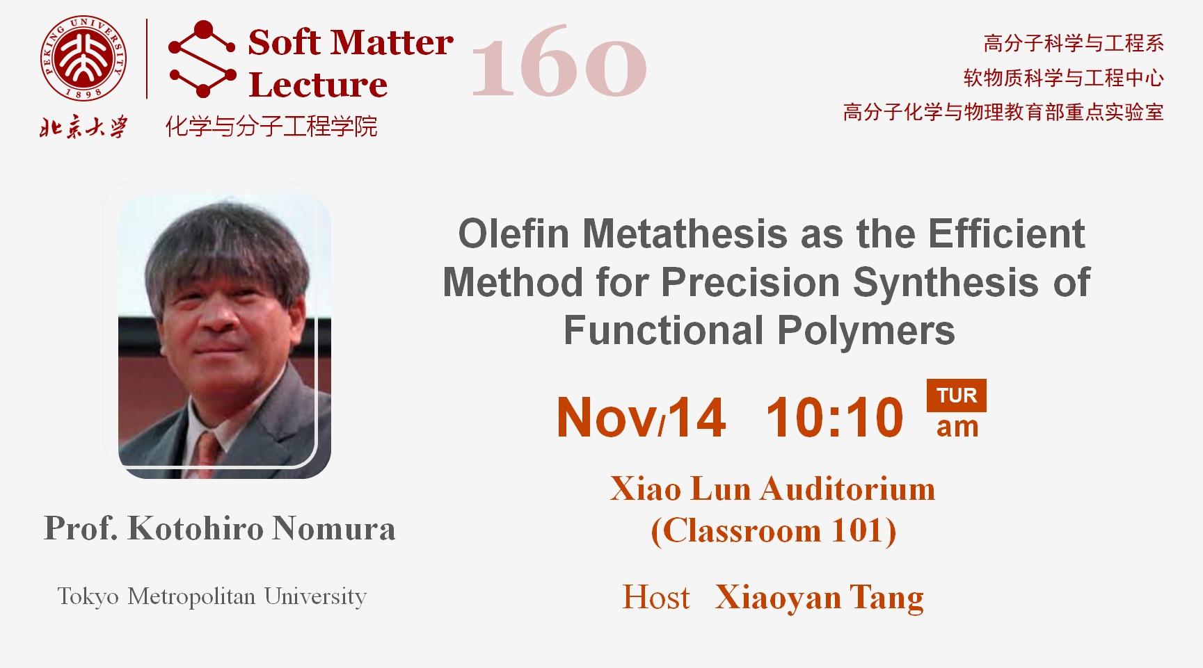 Kotohiro Nomura finished his master studies in University of Tokyo (1988), and then joined Sumitomo Chemical Co., Ltd as a researcher. He received his Ph.D. from Osaka University (1993) and joined MIT as a postdoc (Prof. R. R. Schrock). He became an associate professor in Nara Institute of Science and Technology (1998) and has been a full professor in Tokyo Metropolitan University since 2010. He has co-authored >350 publications, and one of his major subjects is vanadium complex catalysts for olefin metathesis, olefin polymerization and dimerization. Five major awards in Japan: The CSJ Award for Young Chemists in Technical Development (1996), Catalysis Society of Japan Award (Industrial field, 2001; Academic field, 2019), The Japan Petroleum Institute Award (Academic field, 2024), The Society of Polymer Science, Japan Award (Science field, 2024). Vice President, Catalysis Society of Japan (2024-).