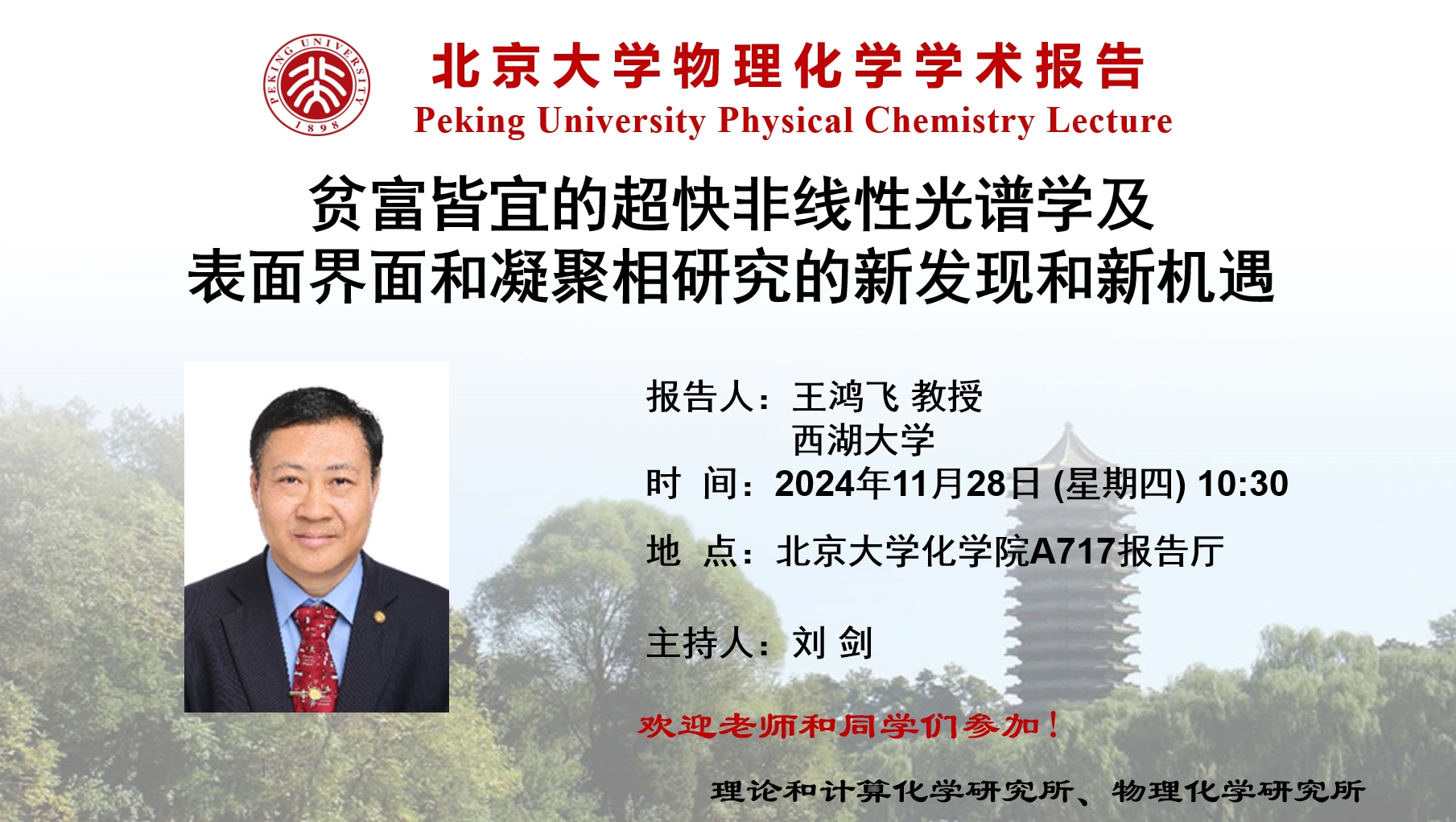 王鸿飞,1968年生于重庆永川,西湖大学理学院化学与物理教授。国家杰出青年基金获得者,美国物理学会会士,国家海外特聘专家。1988年毕业于中国科学技术大学化学物理系;1996年获美国哥伦比亚大学化学系物理化学博士学位,1996-1999年美国宾夕法尼亚大学化学系及物质结构研究所和杜邦公司Marshall研究所博士后。1999-2009年间任中国科学院化学研究所研究员,期间曾任化学所分子反应动力学实验室主任和分子反应动力学国家重点实验室副主任(2000-2004),并于2004年获得国家自然科学基金委杰出青年基金支持(2005-2008);2009-2017年美国能源部西北太平洋国家实验室环境分子科学研究所(EMSL)和物质与计算科学部(PCSD)主任级科学家(Chief Scientist);2017年入职复旦大学化学系,任复旦大学特聘教授; 2021年5月正式入职西湖大学任教授。王鸿飞教授课题组主要开展以表面、界面和凝聚相超快和非线性光谱与动力学相关的现代物理化学和化学物理方面的研究,包括但不限于:(1)表面和界面的物理化学;结构、相互作用与化学动力学;(2)光谱学与分子反应动力学:振动与电子光谱;(3)线性与非线性和光谱学与现代光谱分析方法:红外、拉曼及和频光谱;(4)表面与生物膜上的手性与立体化学等。已发表研究论文100余篇。