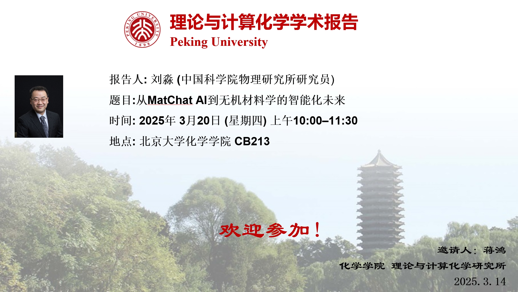 材料科学正在经历新的范式变革,即用数据科学方法(如:数据挖掘、人工智能的等)筛选和预测新材料。本次报告,报告人将介绍MatChat材料智能体的研发故事,介绍该团队在材料科学数据库、人工智能模型等领域的进展。从数据到通用力场,从机器人到语言模型,希望与您共同探讨材料科学智能化的无限可能。
