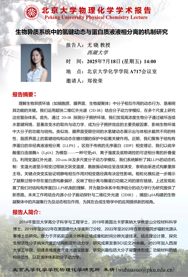 【3003新葡官方网站物理化学学术报告】生物异质系统中的氢键动态与蛋白质液液相分离的机制研究