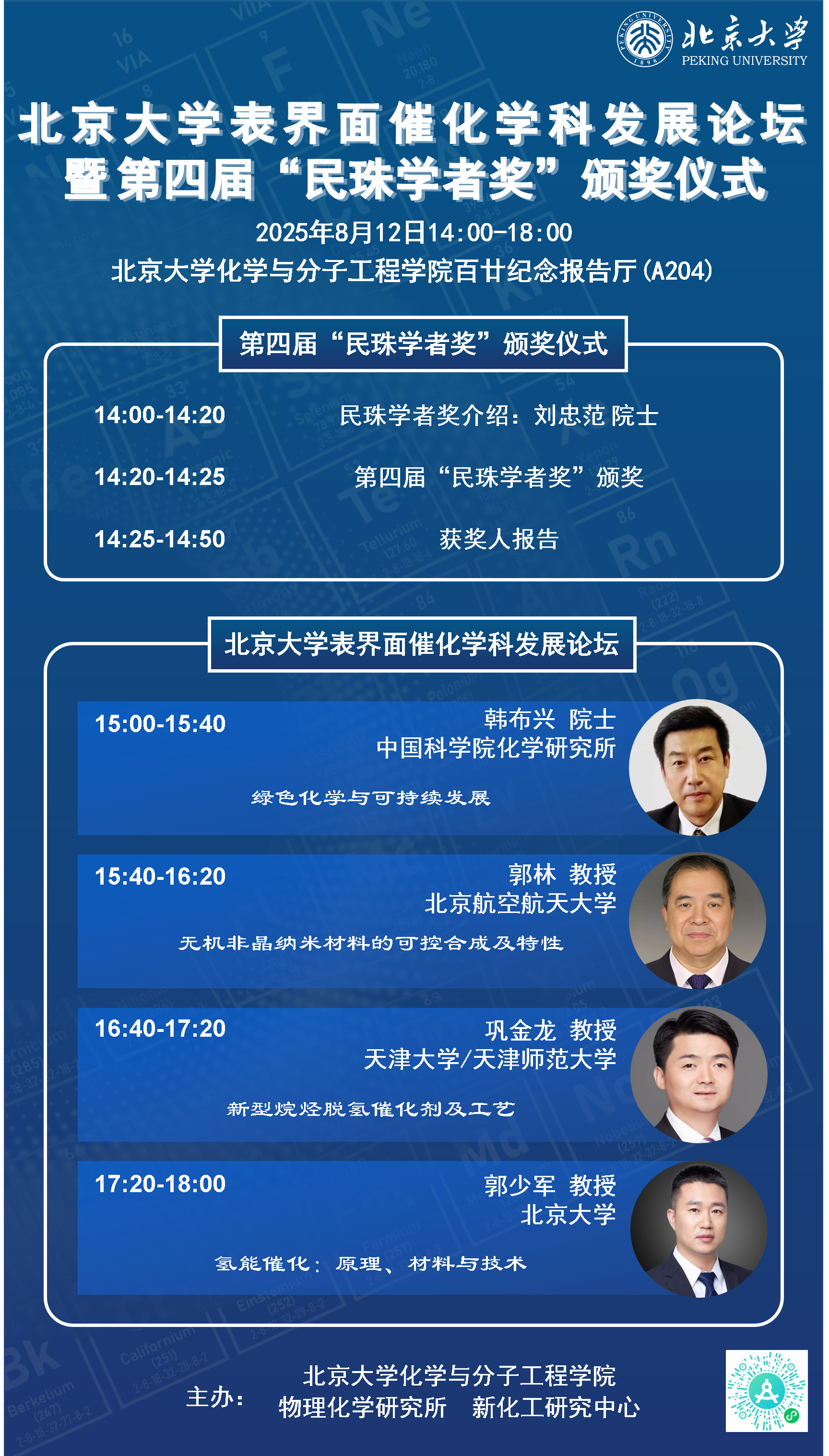 3003新葡官方网站表界面催化学科发展论坛暨第四届“民珠学者奖”颁奖仪式