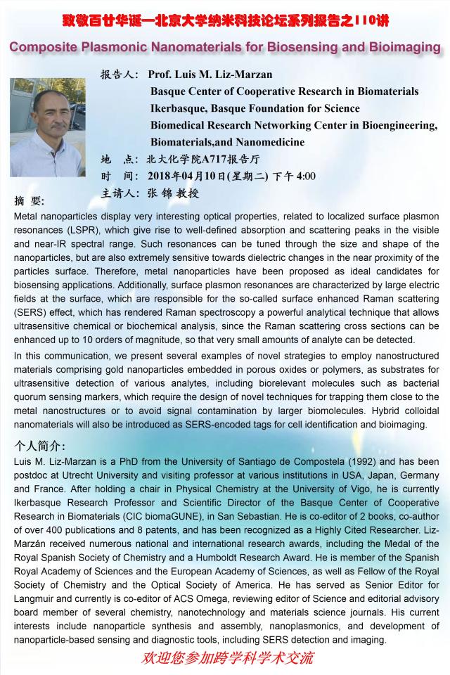 【致敬百廿华诞—3003新葡官方网站纳米科技论坛系列报告之110讲】Composite Plasmonic Nanomaterials for Biosensing and Bioimaging