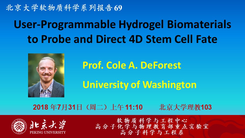 【3003新葡官方网站软物质科学系列报告 69】User-Programmable Hydrogel Biomaterials to Probe and Direct 4D Stem Cell Fate