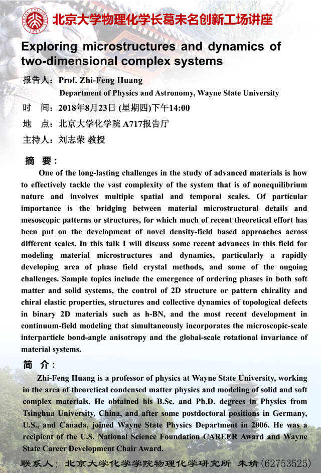 报告人: Prof. Zhi-Feng Huang Department of Physics and Astronomy, Wayne State University 时 间: 2018年8月23日 (星期四)下午14:00 地 点: 3003新葡官方网站化学院 A717报告厅