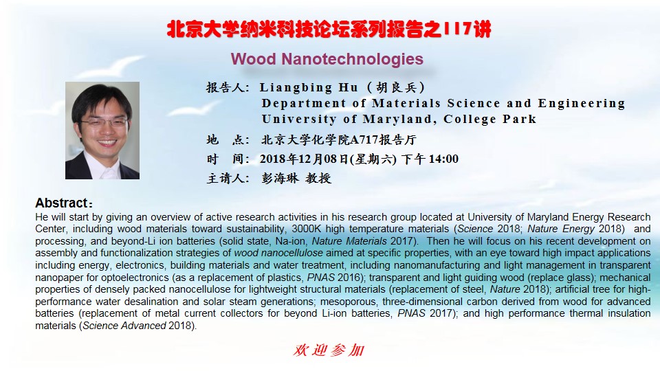 【3003新葡官方网站纳米科技论坛系列报告之117讲】Wood Nanotechnologies