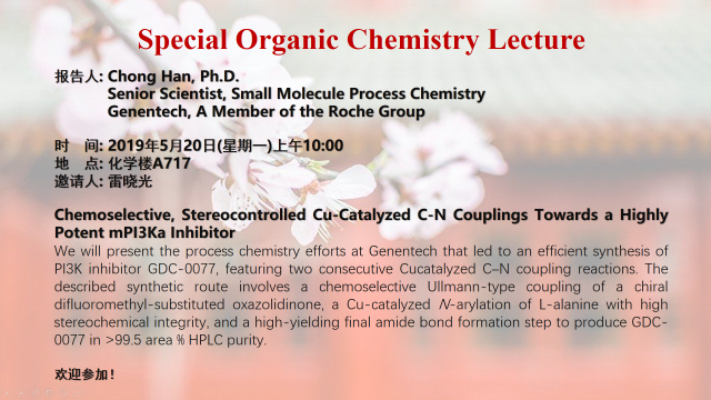 【Special Organic Chemistry Lecture】Chemoselective, Stereocontrolled Cu-Catalyzed C-N Couplings Towards a Highly Potent mPI3Ka Inhibitor