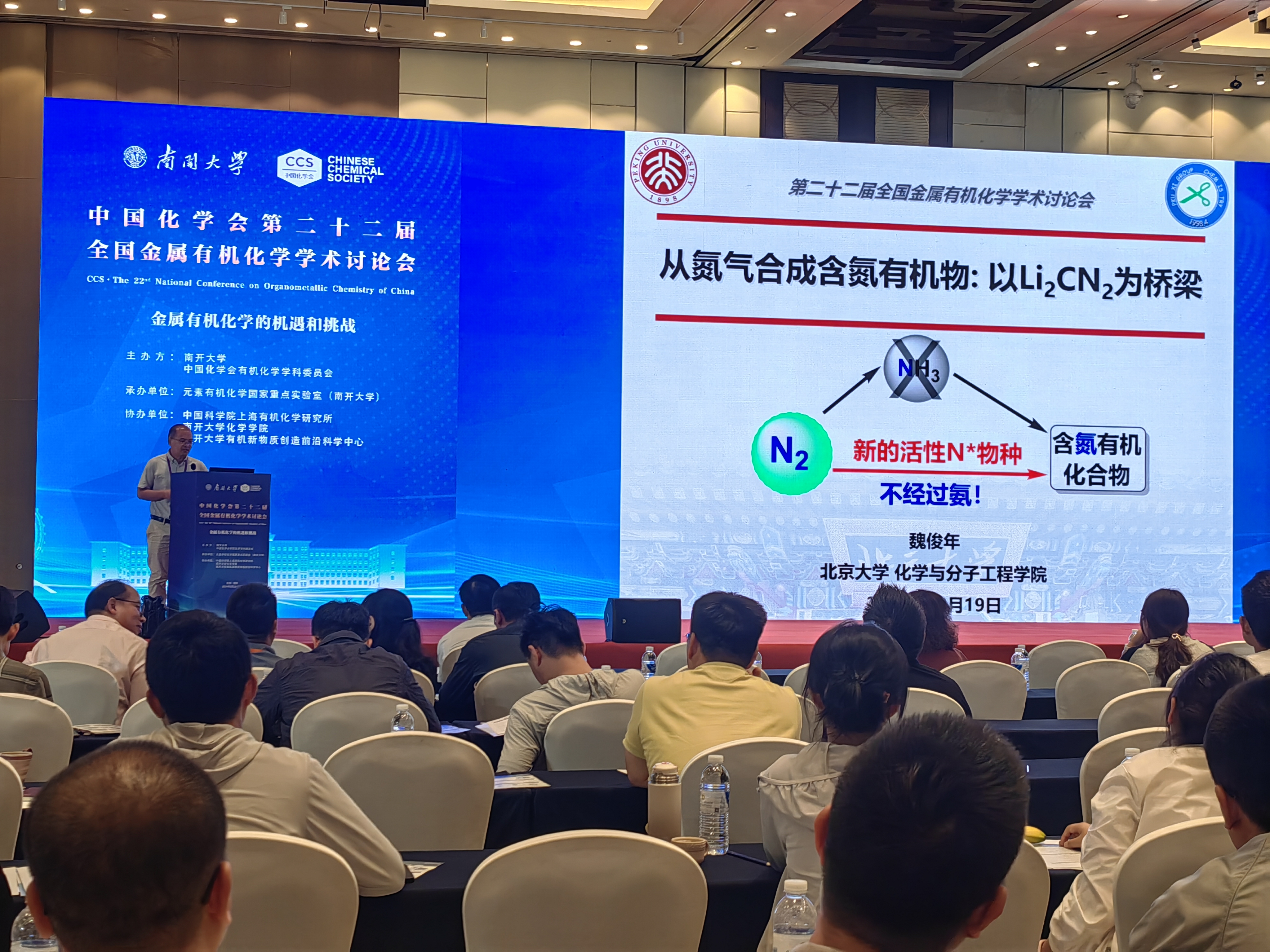 研究室全体成员参加中国化学会第二十二届全国金属有机化学学术讨论会 时间:2024-08-21 来源:作者: 字体: 【小】 【中】 【大】 8月18日至8月21日,研究室全体成员赴天津市参加了在南开大学举办的中国化学会第二十二届全国金属有机化学学术讨论会,与全国金属有机化学界的同行们进行学术交流。魏俊年老师在大会上作了题为“从氮气合成含氮有机物:以Li2CN2为桥梁”的邀请报告。研究室各位研究生和博士后分别围绕各自参与的工作进行了墙报展讲,其中殷珠宝,闫雪超和吴越三位同学荣获了本届会议优秀墙报奖!