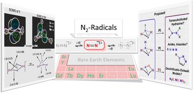 A quintessential approach to activate and functionalize the exceptionally stable diatomic nitrogen (N2) consists of its coordination to transition metal complexes. Accordingly, coordinated N2 can undergo reduction steps to deliver a variety of anionic species such as (N2)1−, (N2)2−, (N2)3− and (N2)4−. In this context, trianionic hydrazido radicals (N2)3− seem to possess atypical reactivity which can be harnessed to forge unprecedented nitrogen-element functionalities (N–E) (E = element). In spite of these promising characteristics, the reaction chemistry of metal-coordinated (N2)3− ligands remains considerably scarce in the literature. In this article, we have surveyed the limited reports related to (N2)3− species and performed preliminary DFT calculations on the known scandium–(N2)3− complex [(η5-C5Me5){nBuC(NiPr)2}Sc]2(μ2–η2:η2-N2)[{K(2.2.2)cryptand}] (1). We have emphasized the future study of the coordinated trianionic hydrazido radical (N2)3− by proposing reaction intermediates and possible reaction pathways as well as radical coupling strategies. These ideas represent an effort to stimulate alternative perspectives on the activation and transformation of N2 into N-containing compounds.