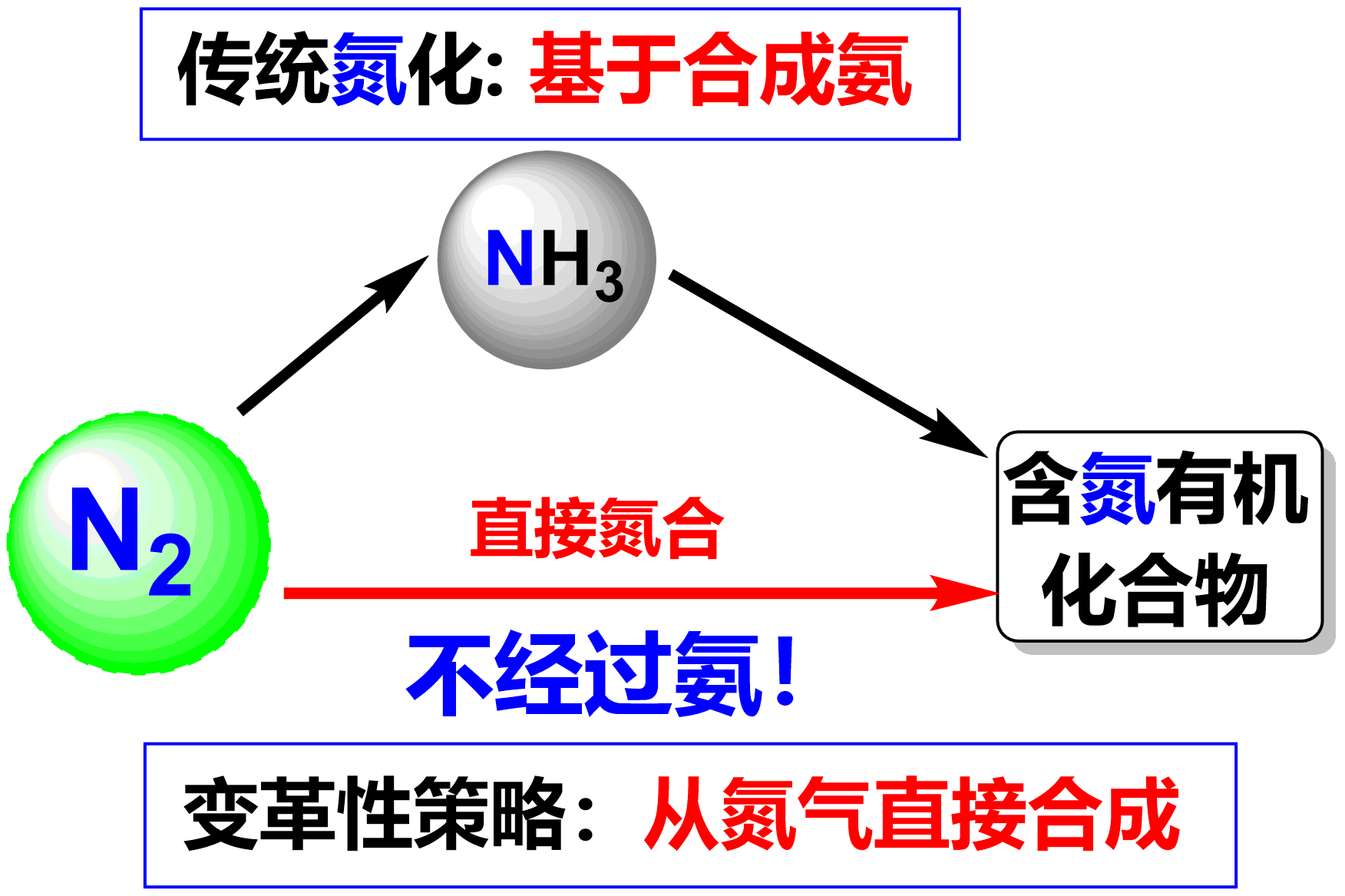 氮气的活化与转化 时间:2021-03-19 来源:作者: 字体: 【小】 【中】 【大】 目前几乎所有的人工合成含氮有机化合物都是以工业合成氨为基础原料制备的。本研究室致力于不经过氨(NH3),直接从氮气,高效、温和地合成含氮有机化合物。
