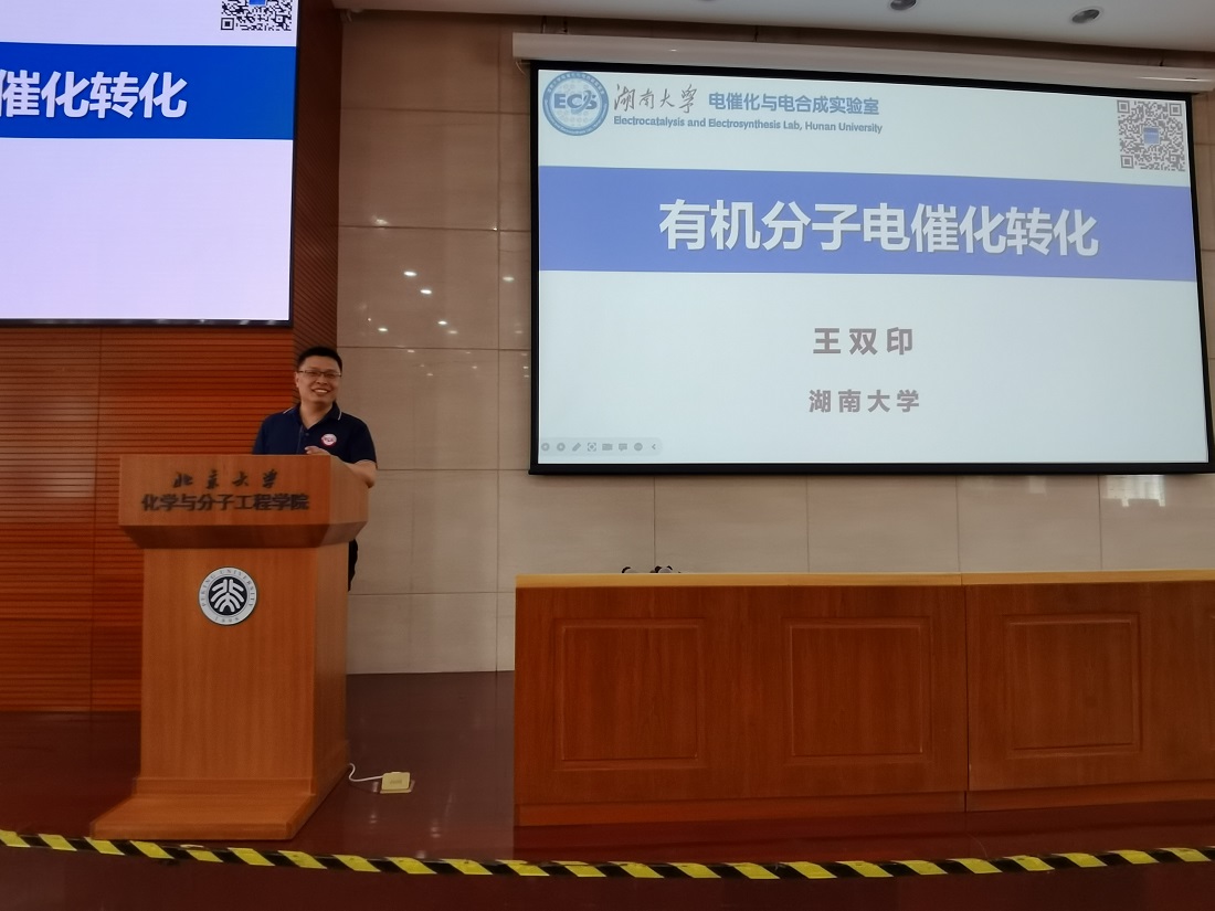 热烈欢迎王双印教授来组访问 时间:2023-07-07 来源:作者: 字体: 【小】 【中】 【大】 7月7日,应席老师和张老师的邀请,湖南大学的王双印教授来组访问,与大家交流工作、参观实验室并合影留念。下午,王双印教授在A204介绍了他的团队在有机分子电催化转化上的精彩工作,并与化学学院的老师和同学们交流。