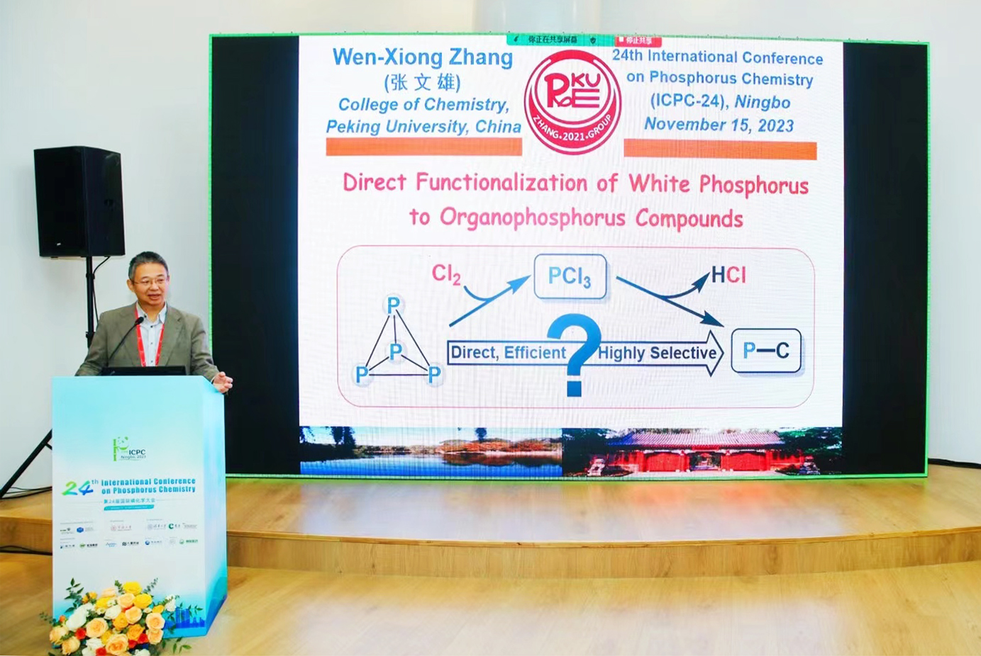 实验室成员参加第二十四届国际磷化学大会 时间:2023-11-21 来源:作者: 字体: 【小】 【中】 【大】 2023 年 11 月 12 日至 16 日,第二十四届国际磷化学大会在中国宁波大学举办。张文雄教授带领部分实验室成员前往参会,与国内外研究磷化学的同行们进行学术交流,并在大会上作关于从白磷直接构筑有机磷化合物的学术报告。 本次会议展示了磷化学领域近期取得的成果,不仅加强了该领域科研人员之间的联系,也促进了该学科的发展。我们研究室参会的成员们围绕白磷活化分别做了墙报展讲,其中皇甫鑫磊同学荣获本届会议优秀墙报奖,祝贺皇甫鑫磊同学!