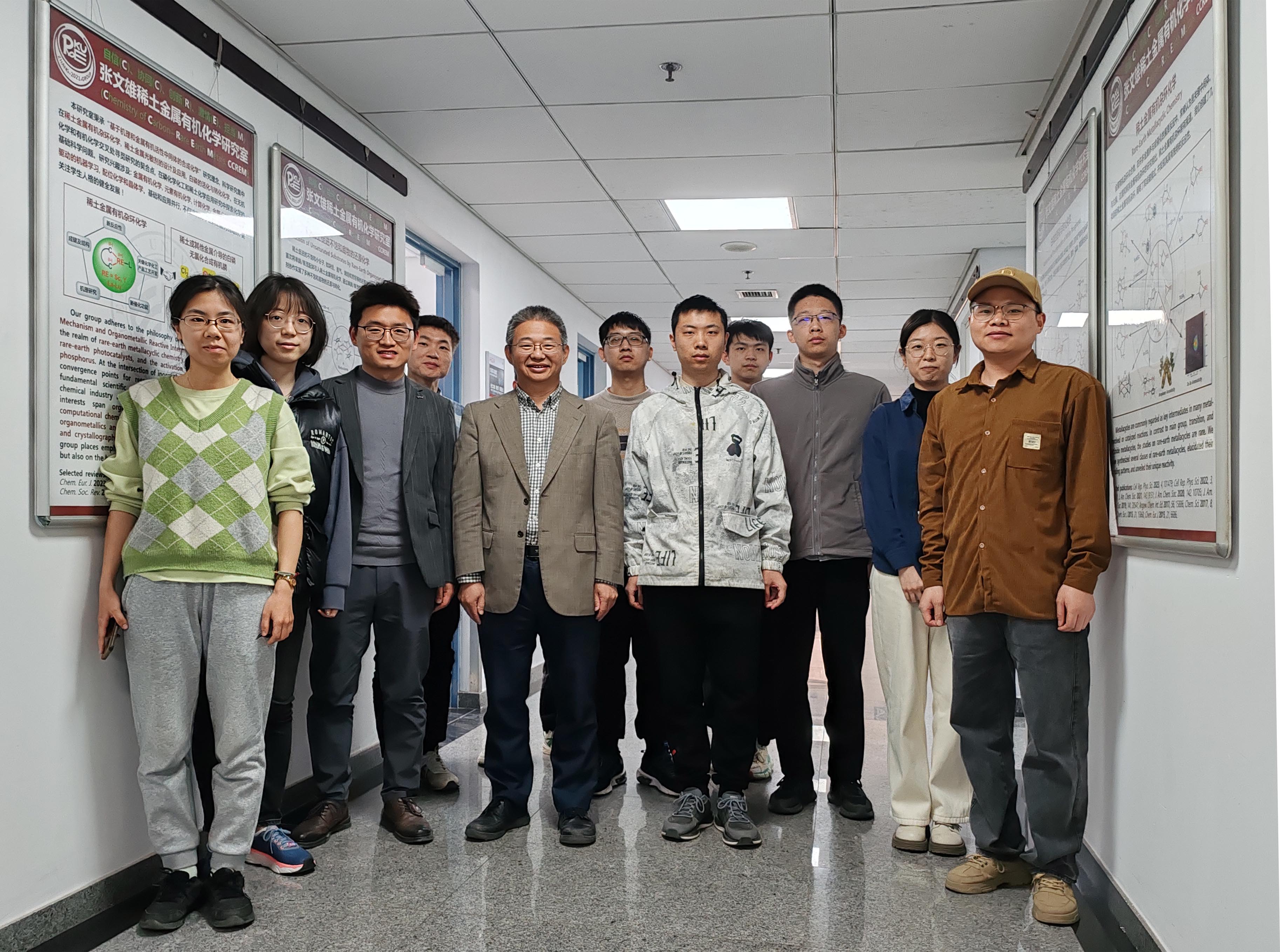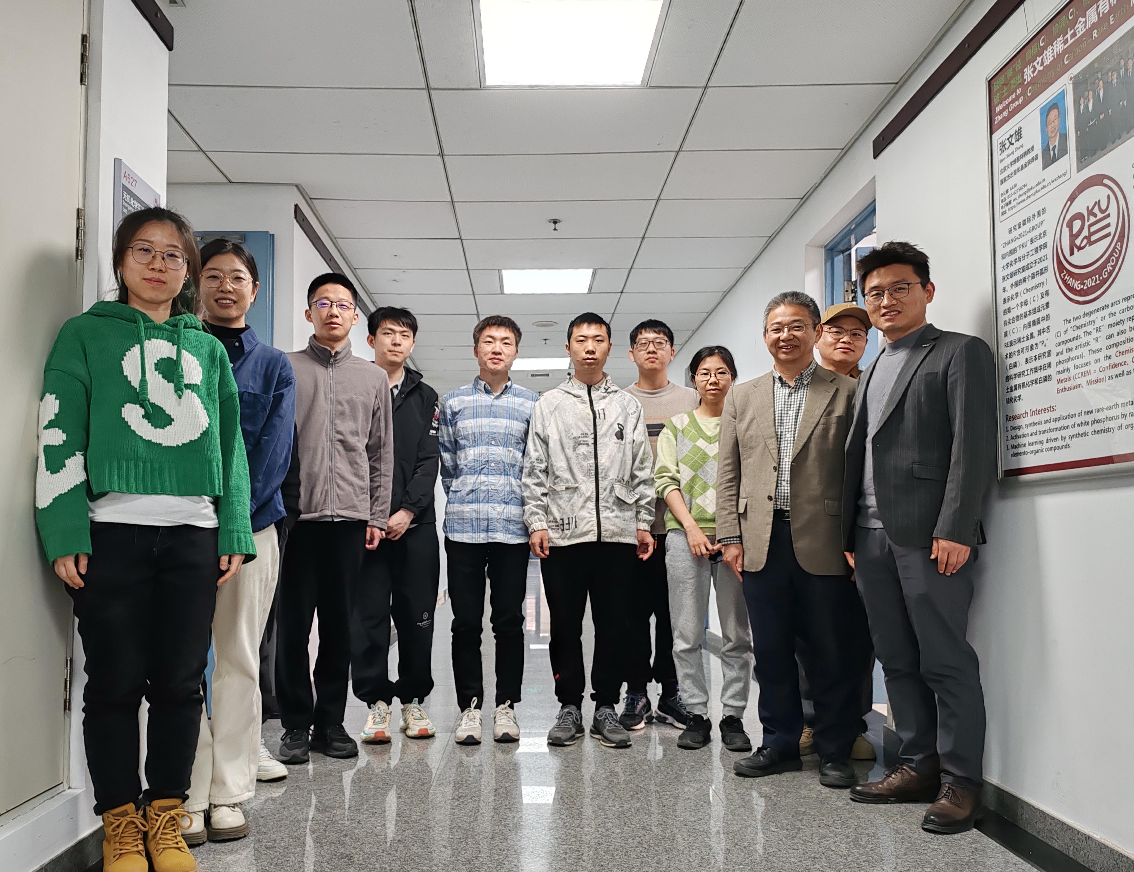 4 月 4 号下午,郑州大学杜景祯教授来到研究室访问,他在张老师的带领下参观了我们的新实验室和研究室展板,并与研究室成员们在展板前合影留念。杜景祯教授于 2019 年在英国曼彻斯特大学化学系放射性化学研究中心获得博士学位,导师为 Steve Liddle 教授,博士毕业后留组进行博士后研究。他在 2022 年获得国家自然科学基金优秀青年科学基金项目(海外)资格,并于 2023 年 5 月加入郑州大学化学学院任学科特聘教授。他的研究方向为过渡金属和锕系元素分子配合物化学的基础研究,侧重于含有锕系金属与主族元素分子配合物的设计合成、分离表征、电子结构、反应性及其在小分子活化中的应用。感谢杜景祯教授的来访!